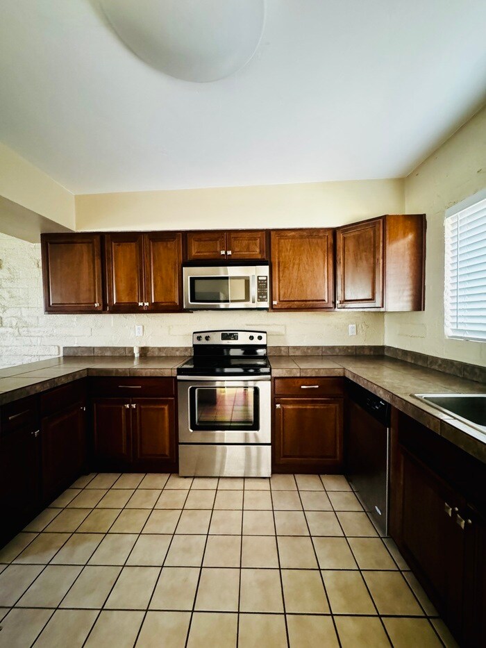 AMAZING two bedroom, one bathroom unit with fenced backyard, all appliances, tile flooring throughout, fireplace, washer & dryer included in unit, and two vehicle designated parking. Located in East Tucson!! Water & Trash are included!! Pets upon owner final approval. Security Deposit equal to one month rent. Must view with an agent before submitting an application. Contact Rincon Ventures (hit extension 1 or 2) or text Monica (Monday through Friday 9am-5pm) if you have questions are would like to schedule a tour. Visit our website at to see other available rentals. Contact us to schedule a showing.