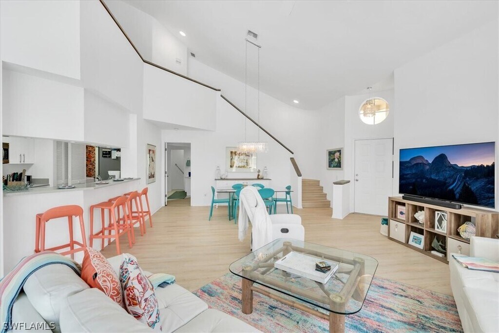 Welcome to your Bonita Springs Lakeside Paradise! This fully remodeled,3 bedroom/2.5 bath with loft Villa boasts your own lanai,pool,jacuzzi,and Blackstone griddle. A private courtyard leads you into this stunning,open concept contemporary home with soaring ceilings providing a sun drenched tropical atmosphere. The kitchen has updated cabinets,counter tops,appliances,as well as a full sized washer and dryer closet. The primary suite is on the first floor complete with a walk-in closet,shower and jacuzzi tub. Next to the kitchen is a bedroom with a queen bed and a powder room. Upstairs is a loft with a queen bed,a bedroom with a walk-in closet,and a full bathroom. Carmel at Vanderbilt Lakes is a double gated community that’s only a four minute drive to Bonita Beach and 20 minutes to Ft. Meyers airport. Tons of shopping,restaurants,and entertainment including Coconut Point and the Mercado are only 12 minutes away. The villa includes a 1 car garage,beach chairs,toys,boogie boards,and 2 beach cruiser bicycles. .