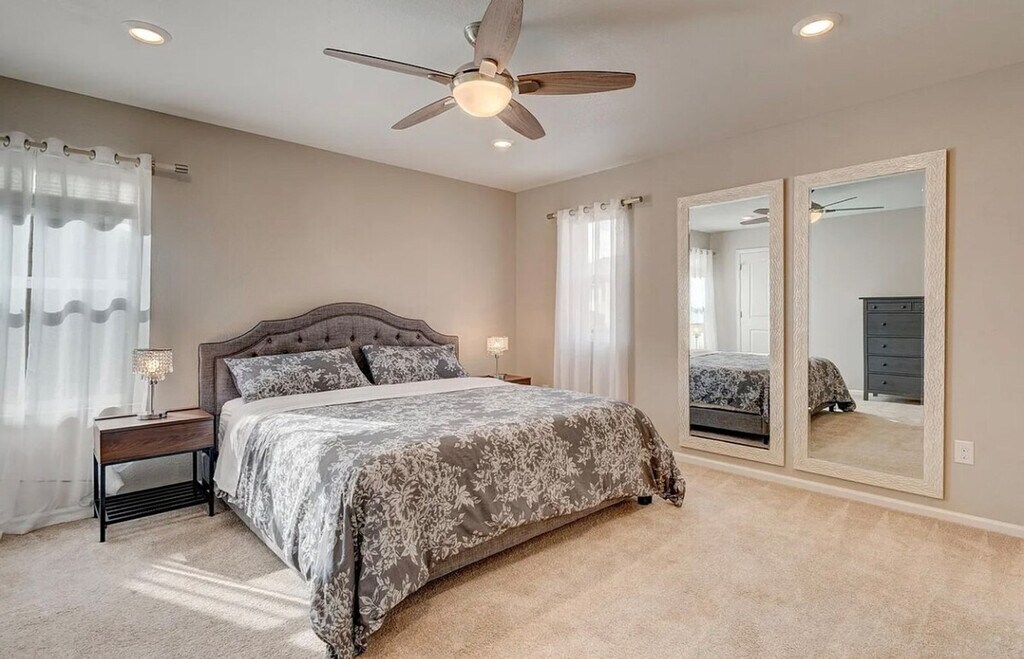 Feel at home in this spacious 3-bedroom, 2-bathroom home featuring a large upstairs loft and a 1-bedroom, 1-bathroom basement suite. The main bedroom boasts a walk-in closet and additional storage, furnished with a king-size Helix Midnight mattress. The additional upstairs bedrooms each offer twin Purple mattresses and ample dresser space. The loft is equipped with a large sofa, an entertainment center, and a desk with an office chair. The basement suite includes a queen-size bedroom and a flexible living area currently set up with a second work desk and chair. Includes a desk with an office chair in the loft and a second work desk and chair in the basement suite.