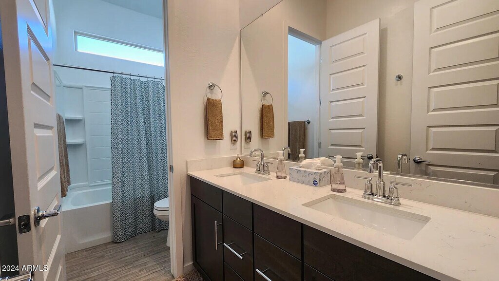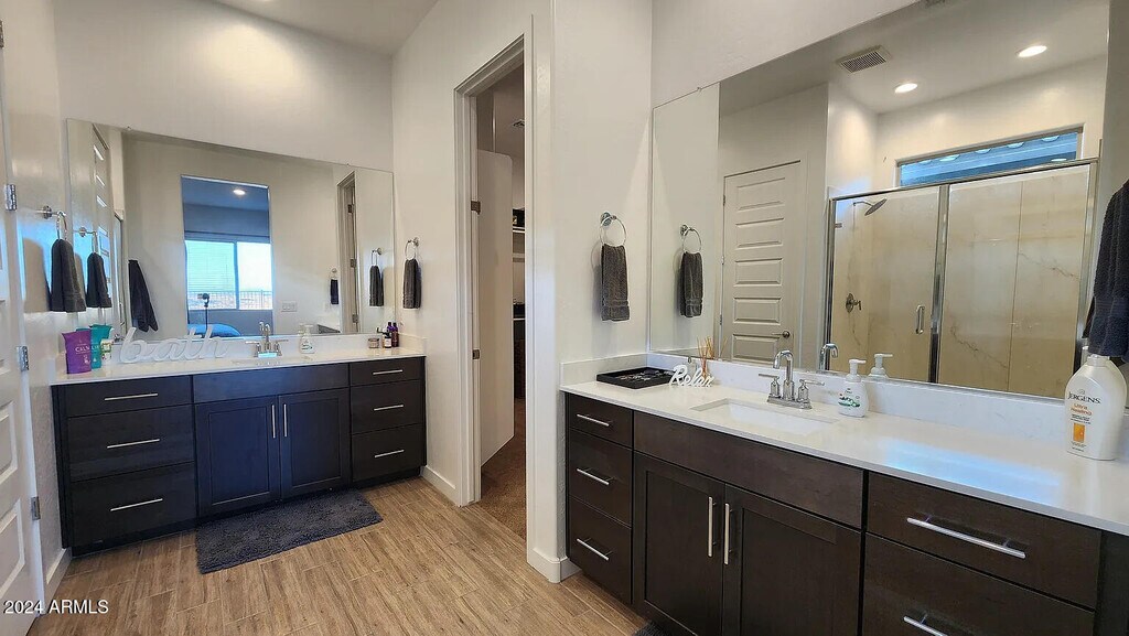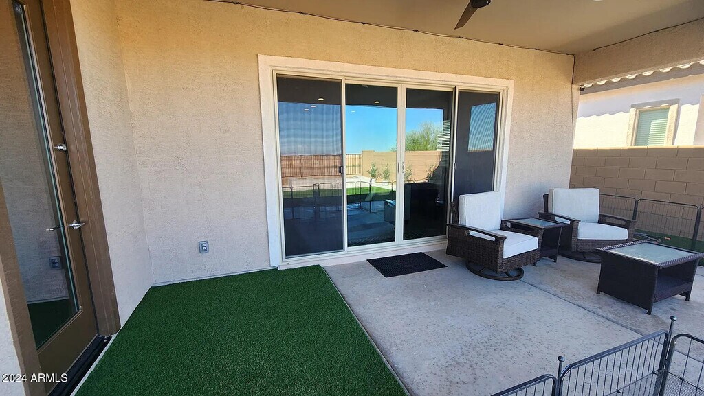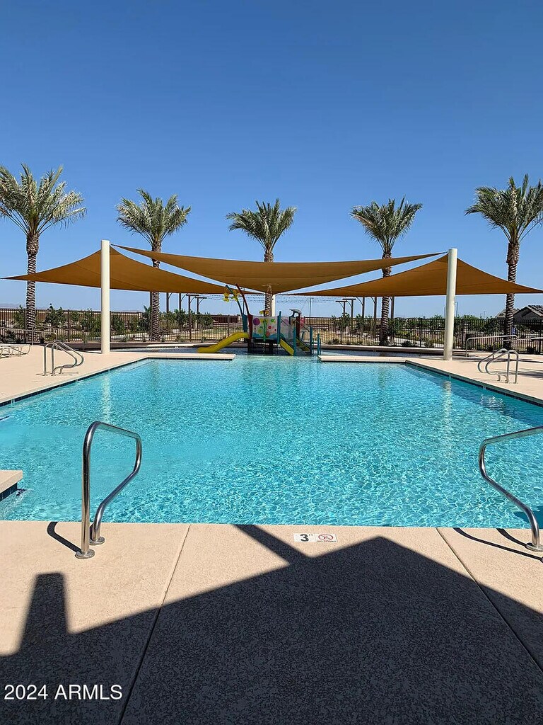 Beautiful home located in the new community of Bella Vista Farms. 3 Car garage,North facing backyard,50amp electric car outlet in garage,water softener,10 foot ceilings,Samsung washer/dryer with pedestals,quartz countertops throughout home,tile flooring in main areas,outdoor fire pit and seating area,commercial grade turf in backyard,overhead storage racks and wall track system in garage,huge walk in closet in main bedroom,ring doorbell and security system,Wi-Fi garage door,fiber internet ready,views of Superstition mountains. Community pool,basketball court,soccer field,beach volleyball,playgrounds,and walking paths. The local area is host to the San Tan Regional Park,where locals enjoy biking,hiking,horseback riding and much more,as well as plenty of shopping.