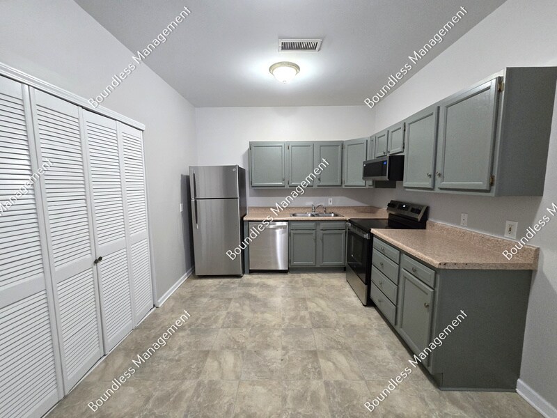 Spacious 3 bedroom/1.5 bath duplex in East Point. This light-filled unit with its freshly painted interior offers large rooms with plush wall to wall carpet! The eat-in kitchen showcases all new stainless-steel appliances plus a brand new washer & dryer! Besides the generous living room, and roomy bedrooms, there's a large hall bathroom plus an additional half bathroom. You will also enjoy the convenience of off-street parking. The unit is total electric and is conveniently located with easy access to I-75, I-85, the airport and downtown Hapeville, East Point and College Park. Walking distance to shopping and restaurants. MARTA stop nearby. Total electric unit. Lawn care included in rent. Pet allowed with $200 fee & $200 deposit - no aggressive breeds. $85 application fee for anyone 18 years or older who will liveing the property. Renter's insurance required.