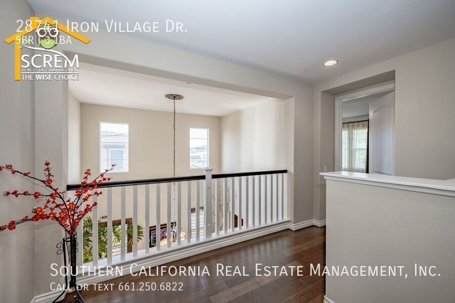 Beautiful five-bedroom, 3½-bath home with solar located in a private, gated community in West Hills, Valencia. A charming courtyard entry welcomes you into this spacious and inviting residence. Step inside to find a bright living room with soaring ceilings and abundant natural light, creating an open and airy atmosphere. From the living room, you’ll find a butler’s pantry that leads to the kitchen, which boasts granite countertops, a center island with a breakfast bar, and stainless steel appliances, including a gas stove, single oven, microwave, dishwasher, and refrigerator. Just off the kitchen is a comfortable dining area and family room, featuring wood flooring, a ceiling fan, and a cozy fireplace. A sliding glass door opens to the private backyard, which includes a covered patio and has no neighbors directly behind, offering extra privacy and a peaceful setting. The oversized bedroom on the main floor includes a walk-in closet and its own private entrance, making it ideal for guests or as a home office. A half bathroom is also conveniently located downstairs. Upstairs, you’ll find a spacious primary suite filled with natural light, featuring carpet flooring and a large private balcony. The primary bathroom offers dual sinks, a soaking tub, and a separate walk-in shower. Two additional bedrooms with ceiling fans share a Jack-and-Jill bathroom with dual sinks, while another bedroom includes a charming window seat, carpet flooring, and an attached full bathroom. An upstairs laundry room with a full-size washer and dryer adds convenience. Additional highlights include solar panels for added energy efficiency and cost savings, and also features a three car tandem garage with a 240V outlet for electric vehicle charging. Enjoy all the amenities the community offers including a pool and spa, park and playground. Conveniently close to schools, shopping, restaurants, and the 5 freeway. *Owners may consider a small pet. For inquiries about this property, please email . To schedule a viewing appointment, visit