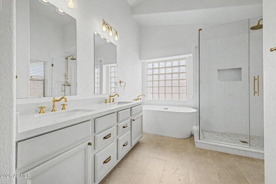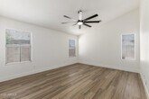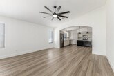 Fully remodeled and situated on a premium parkfront lot,this move-in ready home features an open floorplan with vaulted ceilings and designer upgrades throughout. Recent improvements include new interior paint,luxury plank flooring,carpet,updated fans and fixtures,along with a fully renovated kitchen and bathrooms. The kitchen stands out with two-tone cabinetry,a large center island,quartz countertops,tiled backsplash,and new stainless steel appliances. The primary suite includes a spa-like bathroom with dual sinks,a soaking tub,and a walk-in shower. A versatile den offers flexibility as a home office or optional fourth bedroom. The low-maintenance backyard includes turf,a covered patio,and an RV gate with an expanded side yard suitable for parking or storage. Conveniently located across from the park and just steps from the community pool,spa,and sports courts.