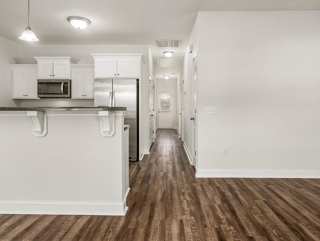 Freshly painted and move-in ready, this inviting home is now available for lease in Darien, Georgia. Offering both comfort and convenience, it features a covered front porch and a screened back porch, perfect for relaxing and enjoying the coastal surroundings. Inside, the spacious primary suite includes a walk-in closet with custom wood shelving and a private bath with double vanities, a garden tub, and a walk-in shower with glass doors. The kitchen and bathrooms are finished with granite countertops, while the living spaces feature durable vinyl flooring and carpet in the bedrooms. Practical details make this home even more appealing, with city water and sewer, no HOA, and lawn maintenance included in the lease. Pets are welcome with a deposit, and the fully fenced yard provides added privacy. The location offers easy access to all that Darien has to offer. You can walk or bike to local favorites such as the wine bar, coffee shop, coastal market, grocery store, and brewery. A nearby multi-use path connects you to the historic waterfront park, Fort King George, shops, and restaurants. If you are looking for a rental home in Darien GA that combines modern finishes with the relaxed lifestyle of Coastal Georgia, this home is an excellent choice.
