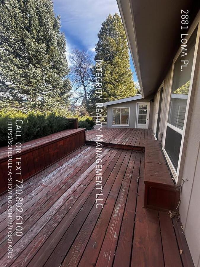 Discover your next home at 2881 Loma Place, a charming residence located in the desirable Palo Park neighborhood of Boulder, CO. This spacious and well-maintained property is perfect for those seeking a comfortable and convenient living environment. This bi-level home features a total of three bedrooms and two bathrooms, providing ample space for relaxation and privacy. The living areas are designed with a focus on comfort and functionality, including a well-equipped kitchen with a dishwasher and washer/dryer hookups. The property also boasts a finished basement, offering additional living or storage space.The home is equipped with central air conditioning to keep you cool during the warm Colorado summers. The inviting living room is perfect for entertaining guests or unwinding after a long day. The property includes a spacious two-car attached garage, providing secure parking and extra storage space. Enjoy the outdoors on the deck, which is ideal for barbecues, gatherings, or simply relaxing with a book. A shed is also available on the property, offering convenient storage for tools and outdoor equipment. The lot measures 6,281 square feet, providing a generous amount of outdoor space for various activities. The property’s exterior features durable brick veneer construction, ensuring longevity and low maintenance. Situated in the Boulder Valley Re 2 School District, this home is close to excellent educational facilities and various amenities. The Palo Park neighborhood is known for its tranquil environment and community spirit. Residents have access to nearby parks, recreational facilities, and a variety of dining and shopping options. Boulder’s prime location offers easy access to major highways, making commutes to Denver and other surrounding areas straightforward and convenient. The property is not located in a flood zone, providing additional peace of mind for renters. This property is a fantastic rental opportunity for those looking to settle in the vibrant and growing city of Boulder. With its combination of modern amenities, spacious living areas, and excellent location, 2881 Loma Place is ready to welcome you home. The Boulder rental license number is RHL-0005057. We are your Boulder Property Manager company. Per HB23-1099, a prospective tenant has the right to provide the landlord a portable tenant screening report, as defined in section 38-12-902(2.5), Colorado Revised Statutes; and if a prospective tenant provides the landlord with a portable tenant screening report, the landlord is prohibited from charging the prospective tenant a rental application fee; or charging the prospective tenant a fee for the landlord to access or use the portable tenant screening report. The portable tenant screening report must be provided to the landlord directly by the consumer reporting agency and can be no more than 30 days old. "Portable Tenant Screening Reports (PTSR)(COLORADO PROPERTIES ONLY): 1) Applicant has the right to provide Integrity Realty Management with a PTSR that is not more than 30 days old, as defined in § 38-12-902(2.5), Colorado Revised Statutes; and 2) if Applicant provides Integrity Realty Management with a PTSR, Integrity Realty Management is prohibited from: a) charging Applicant a rental application fee; or b) charging Applicant a fee for Integrity Realty Management to access or use the PTSR 2 Car Garage Ac Dog Only Enclosed Patio Fb Sprinkler System No Vaulted Ceilings Washer And Dryer Included Washer And Dryer Hook Ups