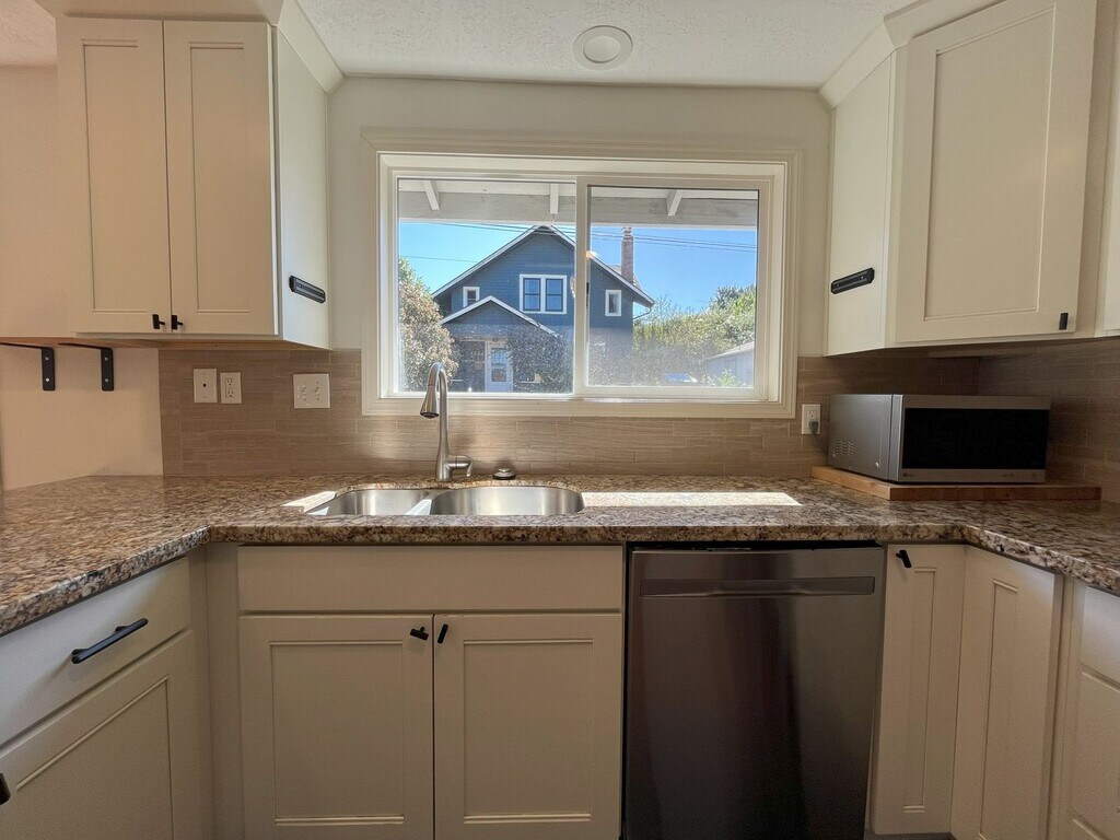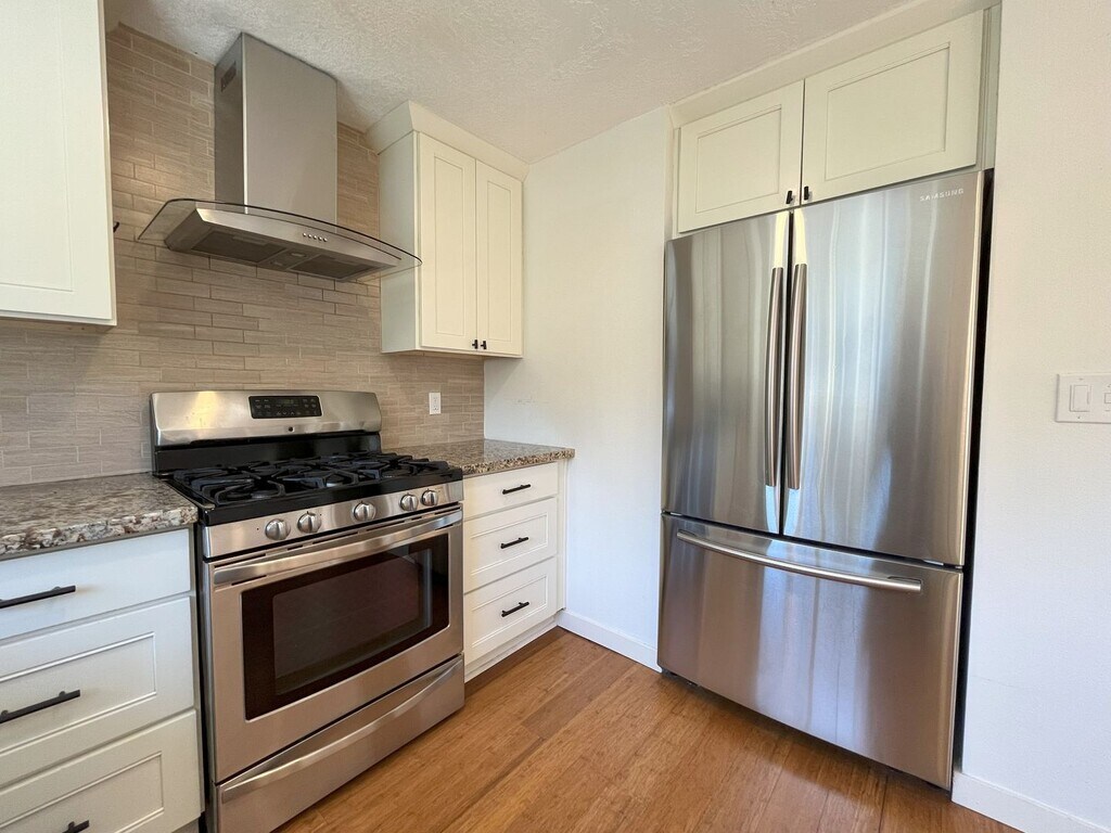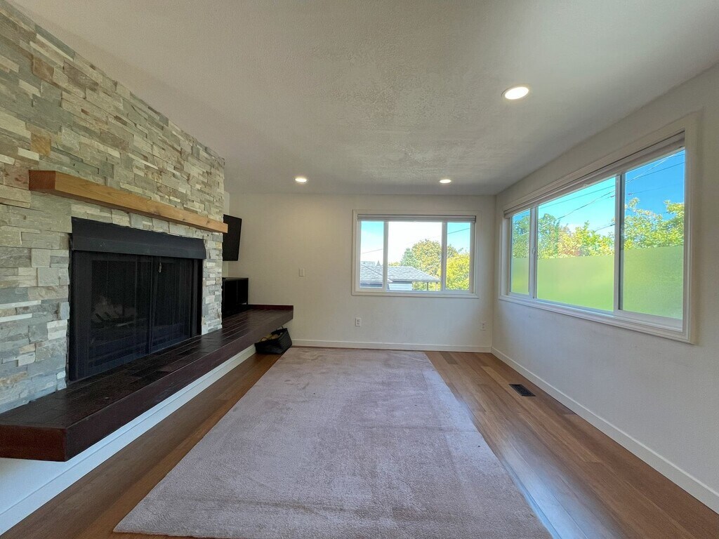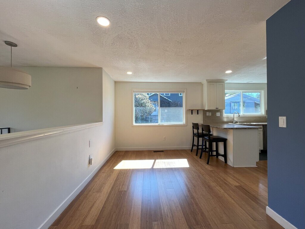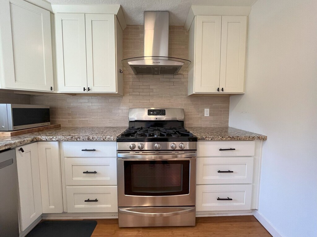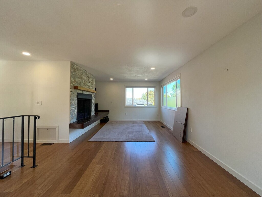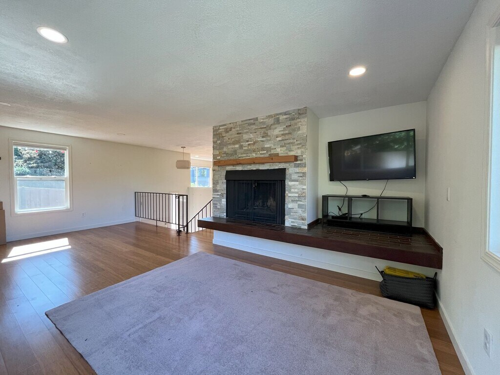 Welcome to this inviting 2,586 sq. ft. home offering 5 bedrooms, 3 bathrooms, and a flexible layout designed for both comfort and function. With wooden steps leading to a covered front porch, a bold red front door, and charming landscaping framed by a picket fence, this home makes a warm first impression. Step inside to find bamboo hardwood floors flowing across the main level. The spacious living room features a cozy rock-accented fireplace with a built-in bench and plenty of natural light from surrounding windows. The modern kitchen is equipped with stainless steel appliances, granite countertops, a double-basin sink framed by a wide window, gas oven and stovetop, and a closet pantry. White cabinetry and a tile backsplash add style, while a bar seating area provides the perfect spot for casual dining. A connected dining space makes entertaining seamless. The main level hosts three bedrooms, including a bright primary suite with sliding glass doors to a private patio and pergola. The ensuite features a step-in shower and single vanity. Two additional bedrooms—one with dual windows and one with an open closet—provide flexibility for family, guests, or an office. The lower level expands your living space with a versatile family room, an entertainment room ideal for a home theater, and two additional bedrooms. A full bathroom and laundry room with extra storage complete this level. With its spacious layout, modern kitchen, two living areas, and private outdoor spaces, this home blends comfort and convenience for everyday living and entertaining. **Open Application Period Begins (10/6/25)** Call or Text Our Leasing Agent at to schedule a showing! Visit our website to apply and view other homes we have available! Do you need property management services? Maximize your income and cut your costs!