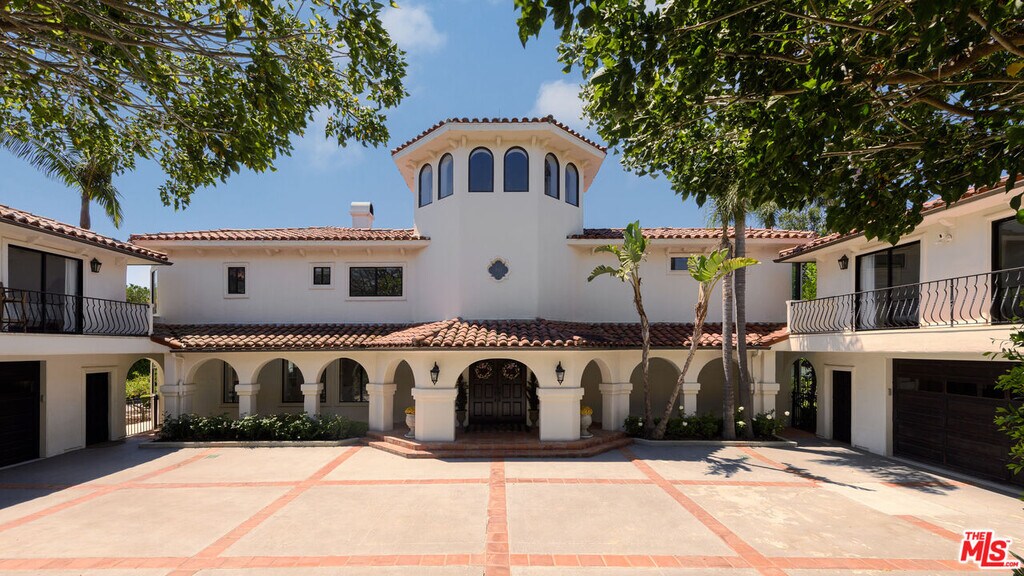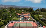 Set behind gates in one of Malibu's most coveted enclaves, this Spanish Mediterranean estate offers exceptional privacy, resort-style amenities, and beautifully updated interiors across a rare multi-structure compound. A gated motor court introduces the residence with a covered entry and stately wood double doors that open to a dramatic two-story foyer filled with natural light. The formal living and dining rooms create an elegant flow for entertaining, while the expansive chef's kitchen features marble counters, an ascending Wolf hood, six-burner Wolf range, double Wolf ovens, Sub-Zero refrigeration, Fisher & Paykel dishwashers, a large island with sink, breakfast bar seating, and an additional dining area overlooking the grounds. A jewel-box powder room leads toward the inviting family room, where wood floors, vaulted beamed ceilings, a grand fireplace, a reading nook, and French doors create a seamless connection to the outdoors. A staircase here descends to a temperature-controlled wine cellar. Two serene bedrooms anchor the main levelone with sliding doors and tranquil pool views, the other with wood floors, a built-in desk, and access to a stone-finished bathroom with dual showerheads. Upstairs, a versatile bedroom or bonus room connects to a Jack-and-Jill bathroom shared with an adjoining suite featuring beamed ceilings, a sliding barn door, and a custom walk-in closet. Another bedroom offers high ceilings, a loft accessed by spiral stairs, an en-suite bathroom, and a walk-in closet. The private primary suite enjoys vaulted ceilings, a sitting area with fireplace, balcony access, a spa-style bathroom with steam shower, freestanding tub, and a keypad-entry closet. Crowning the home is an octagonal tower room accessed by an exterior spiral stairway an atmospheric perch ideal for yoga, meditation, or quiet retreat. The backyard unfolds as a true resort with a large pool and automatic cover, in-ground spa, expansive brick terraces, a pergola-covered outdoor living and dining pavilion, a Lynx-equipped outdoor kitchen, and generous grassy lawns framed by fruit trees and mature privacy hedges. A dedicated outdoor gym area and a full tennis court with stadium lighting and batting setup elevate the property's recreation potential. Two exceptional guest houses each positioned above its own two-car garage offer complete self-sufficient living with wood floors, stone counters, KitchenAid appliances, dining space, light-filled living rooms opening to balconies, comfortable bedrooms, and stone-finished bathrooms. Nest systems, thoughtful upgrades, and manicured landscaping complete this private Grayfox retreat, offering a rare opportunity to enjoy true resort living in the heart of Malibu. MLS# 25623921
