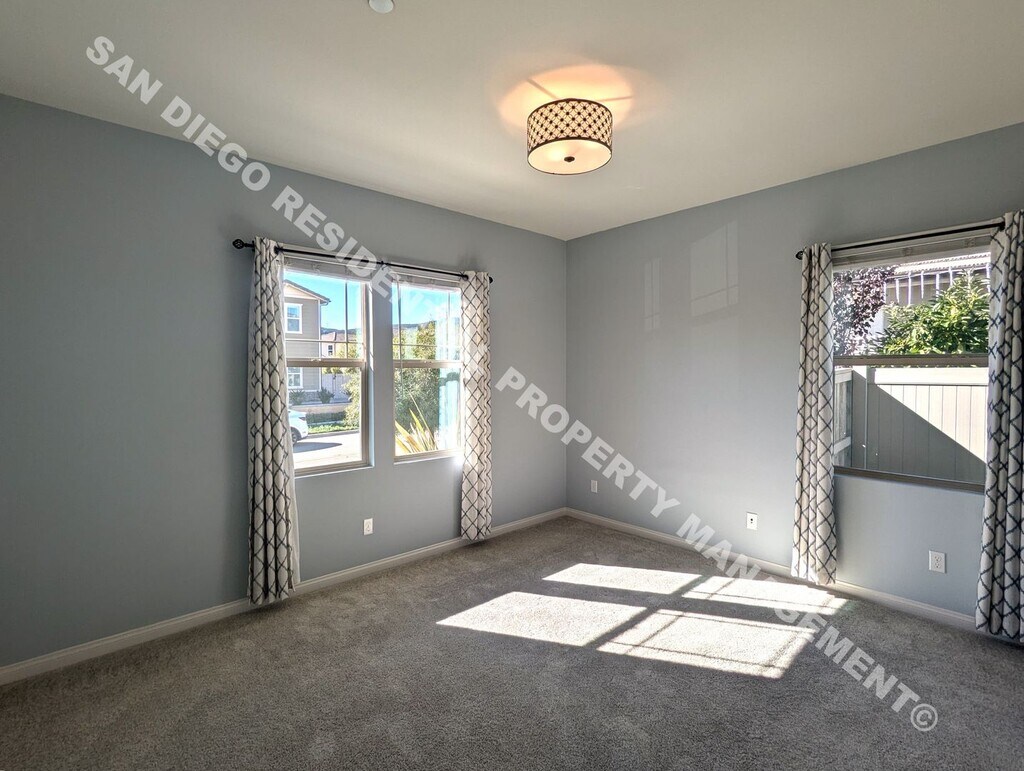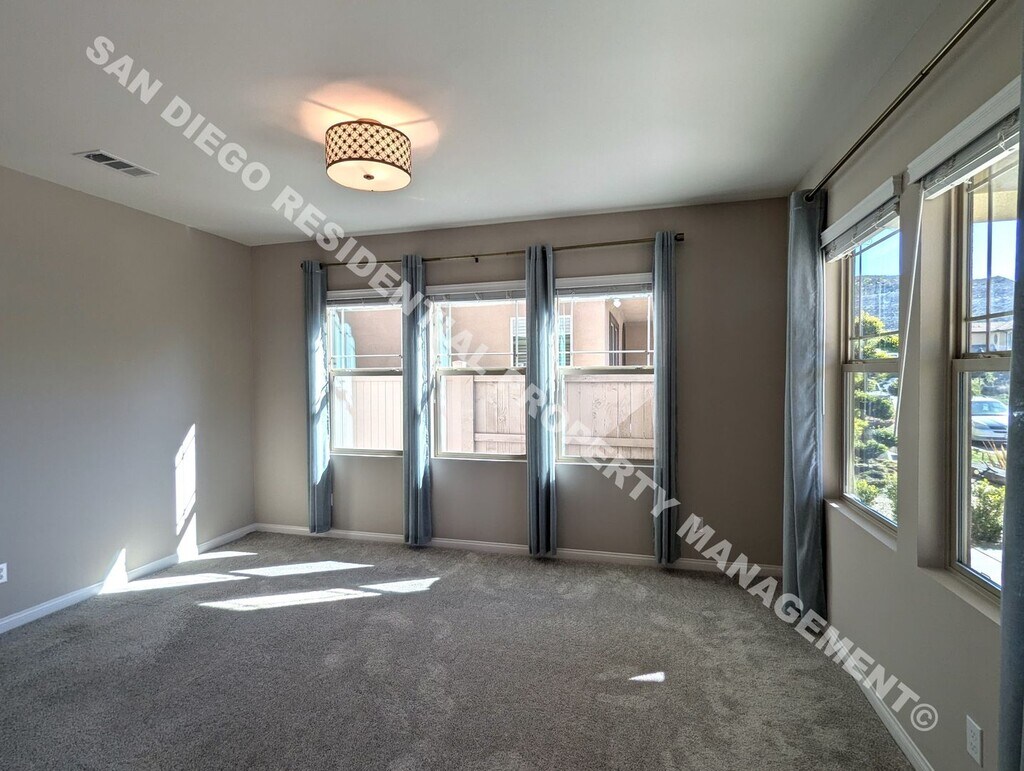 **Please do not disturb the tenants** This stunning 4-bedroom, 4.5-bathroom residence is designed for those who love to entertain and enjoy modern living. The chef’s kitchen is a culinary enthusiast’s dream, perfect for hosting gatherings or creating gourmet meals. A full bedroom and bathroom on the main level add convenience and flexibility for guests or multi-generational living. Energy-efficient and thoughtfully designed, the home features solar panels, an EV outlet, central air and heat, a Nest thermostat, and a whole-house fan. The 3-car semi-attached garage provides ample space for vehicles and storage. Outdoor enthusiasts will love the location, with Harmony Grove’s 4th of July Park and the Elfin Forest Recreational Reserve just moments away, offering scenic hiking and biking trails. The vibrant community boasts resort-style amenities, including a pool, spa, and playgrounds for residents to enjoy. Don’t miss this opportunity to live in one of Escondido’s most sought-after neighborhoods. Schedule a viewing today and experience Harmony Grove living at its finest! If you're interested in this property, we recommend driving by to confirm that the location and neighborhood meet your needs. TO SCHEDULE A SHOWING: * Visit or call us at . PLEASE CHECK OUT: * The video tour linked on our website * The 3D Tour available on Zillow RENTAL CRITERION (No Exceptions): * Minimum FICO credit score: 650 with no negative marks * Verifiable gross income of 3.5 times the monthly rent * Renter’s insurance required * Proof of income required (Pay stubs, bank statements, tax returns). Self-employed individuals might require additional documentation. * 3 years of verifiable rental history with contact info (Military exemptions apply) REASONS FOR AUTOMATIC DENIAL: * Evictions or unlawful detainers * Open bankruptcies * Incomplete or unverifiable applications * False or misleading information APPLICATION PROCESS: * Each applicant 18 or older must submit a separate application * The application fee is non-refundable * Applications are processed in the order received * All documents must be uploaded to complete your application * A signed lease and security deposit are due within 48 hours of approval to secure the property * Unit cannot be held for more than 2 weeks from the time of tenancy approval without consent from the owner San Diego Residential Property Management is the only authorized agent contracted to represent the owner of this property. CA DRE #01859951