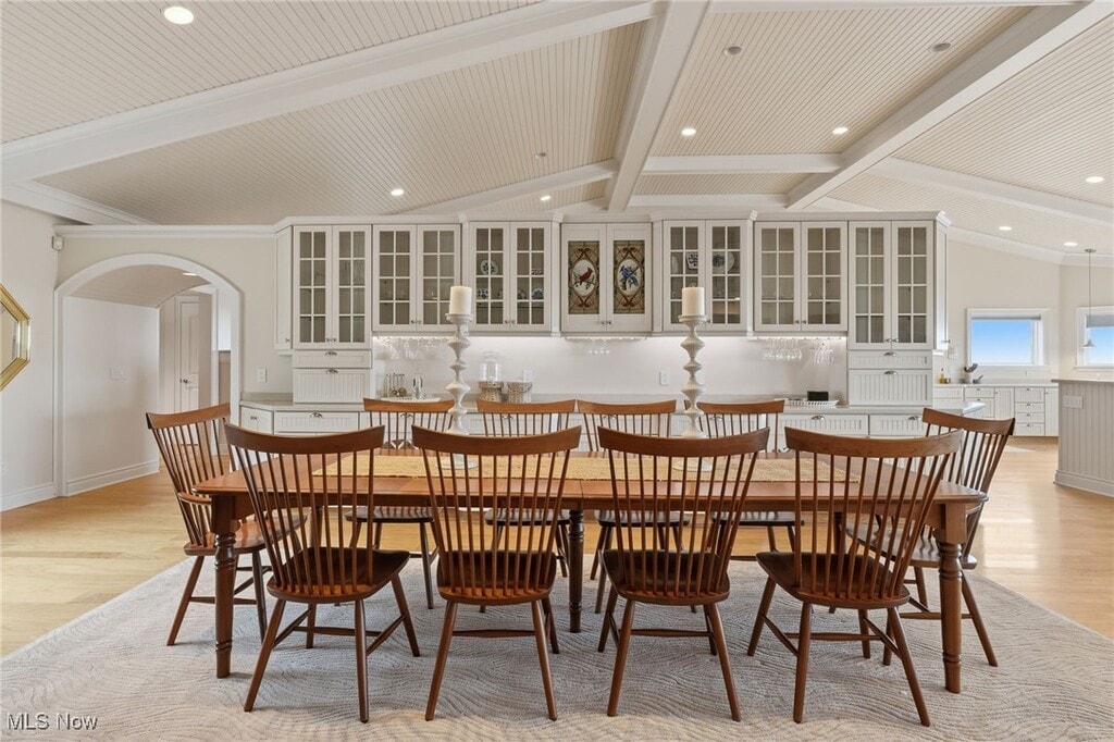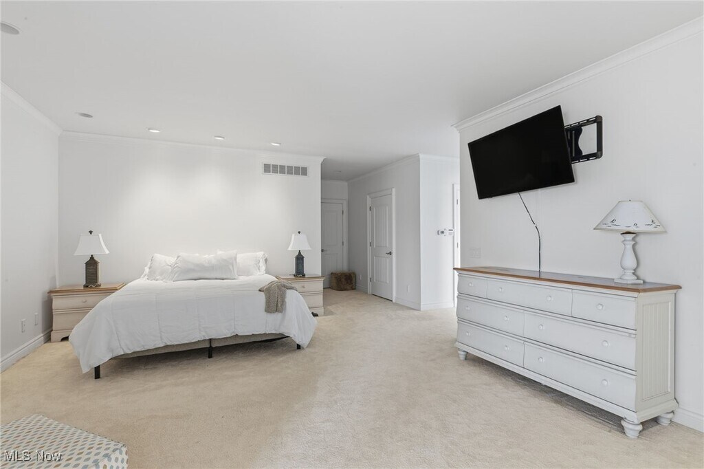 Nestled along the shores of Lake Erie,this spectacular Bay Village home offers over 8,000 square feet of living space with a blend of comfort,style,and lakefront serenity. Featuring its own private beach and a view of the Cleveland skyline from the water’s edge,the property is set far back from the road for a true sense of privacy and quiet,paired with incredible lake views from nearly every room. The main level features an open layout with walls of windows,a spacious great room and dining area beneath coffered ceilings,and a lakefront kitchen with a curved peninsula and bar seating—perfect for everyday living or entertaining. Off the living room,a glass-railed deck overlooks the water,creating a seamless connection between indoor and outdoor living. A custom wet bar and a full wall of built-in cabinetry add both style and function to the main living area. The owner’s suite is also on the main level and includes a spa-like bath,walk-in closet,and bonus room surrounded by 180-degree lake views. A first-floor office overlooks the water,and a laundry room,two powder rooms,a mudroom,and a three-car garage complete the main level. Upstairs,two additional bedrooms each offer lake views and access to a shared deck and full bath. The lower level adds nearly 4,000 square feet of flexible living space,featuring two large recreation areas with views of the water,a sunroom,storage space,and stairs leading directly to the beach and water. Conveniently located near the Metroparks,local shops,restaurants,and highway access,this home combines lakefront living,privacy,and luxury in one truly remarkable Bay Village property available for lease.