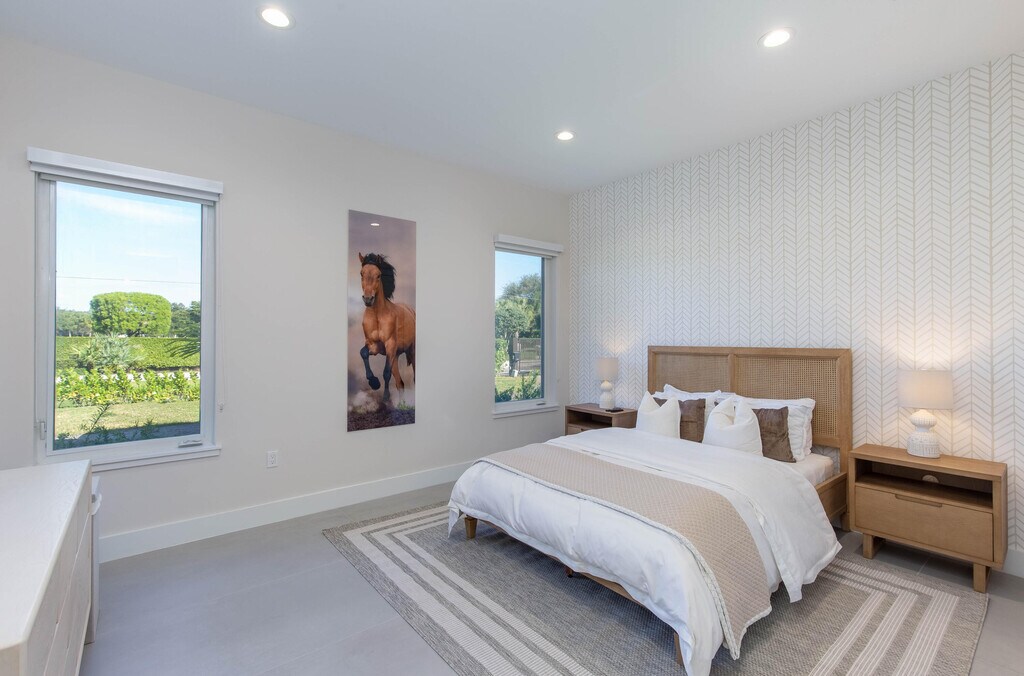Exquisite seasonal lease in the coveted Saddle Trail neighborhood of Wellington. Modern,4-bed,4-bath residence crafted for comfort and convenience,with an expansive open-concept living area and high-end finishes. Each bedroom is large with its own en-suite bathroom. Gourmet kitchen featuring premium appliances,custom cabinetry,and a large islandperfect for entertaining. State of the art brand new 10 stall barn with a tack room,wash racks,feed room,5 paddocks,and a lounge,all designed for top-tier horse care. Easy hackable access to the horse show,with many riding trails for days off makes for the perfect seasonal retreat! Entire property offered at $45,000 per month. MLS ID R11146505