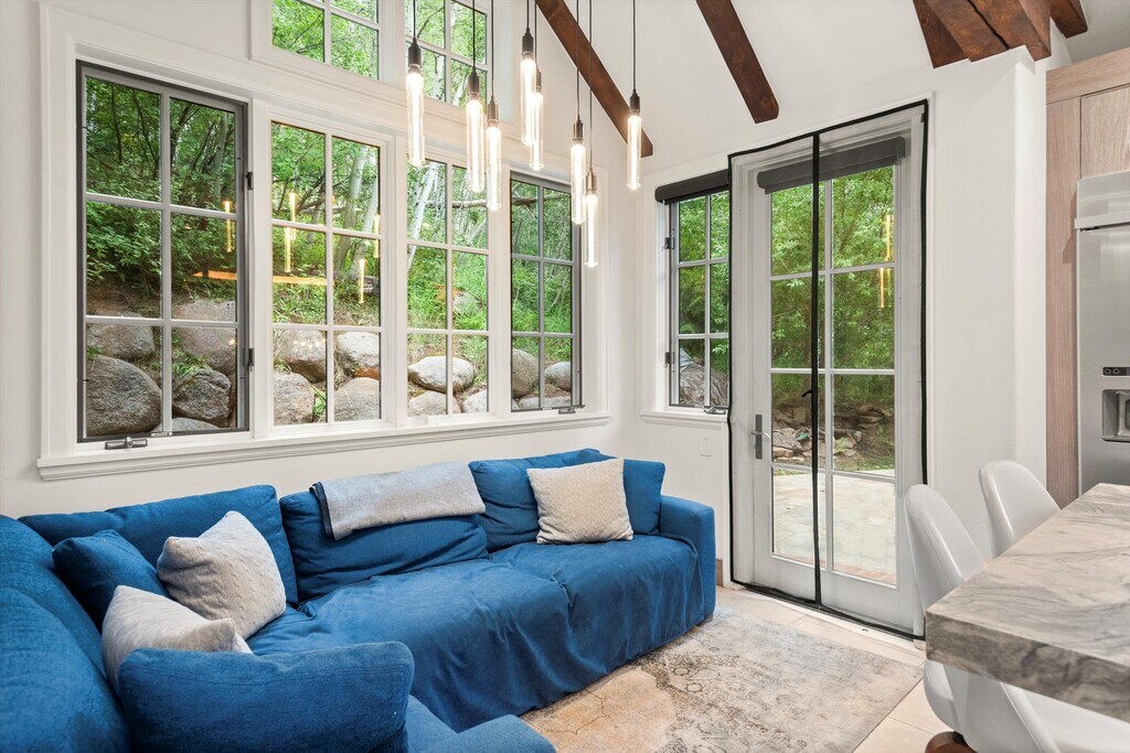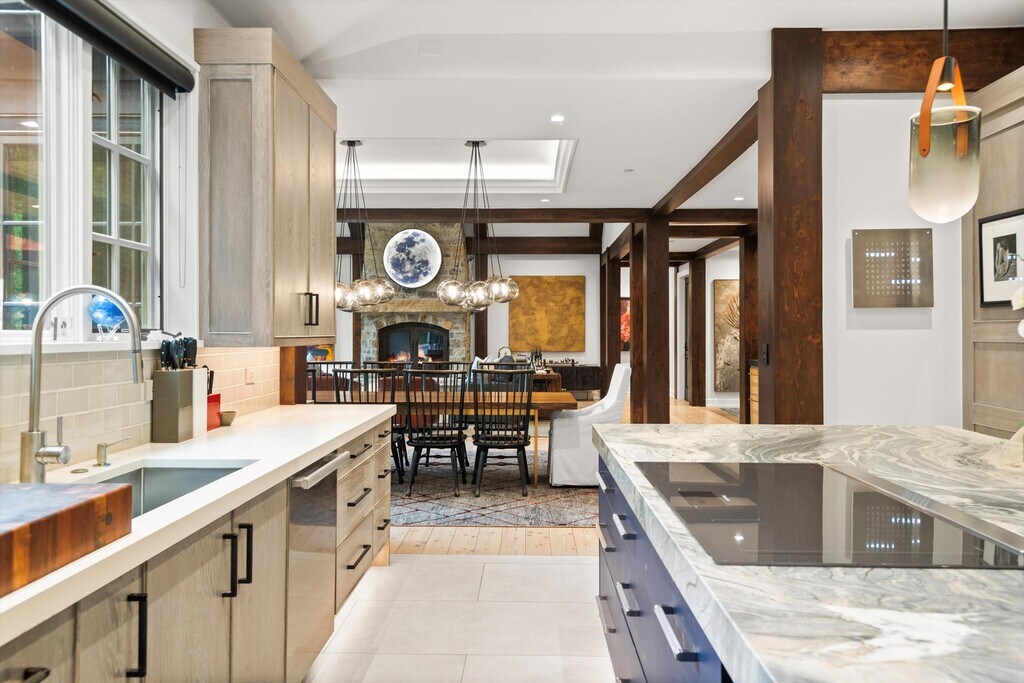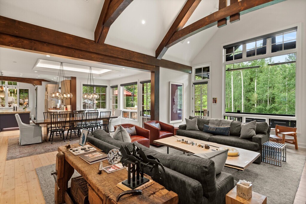 This remodeled single-family home spans 6,500 square feet and features 5 bedrooms and 5.5 baths, offering luxurious and spacious living across three levels. Situated on an end .81 acre, this property boasts stunning wooded mountain views and advanced ski-in access with a direct view up Lower Stein. Residents also enjoy exclusive access to the Ritz Carlton gym and pool. On the main level, you'll find an elegant dining room, living room, and a modern kitchen, along with a guest primary bedroom equipped with a king bed and A/C for ultimate comfort. The open main living area creates a welcoming space for gatherings and relaxation. The upper level is dedicated solely to the private primary suite, featuring a king bed with A/C, a large bathroom, a spacious walk-in closet, and a private deck, ensuring complete privacy and relaxation. The lower-level hosts three additional bedrooms: a third bedroom with a king bed and ensuite bath, a fourth bedroom with a queen bed and ensuite bath, and a fifth bedroom with a queen bed and a bath located across the hall. This level also boasts exceptional entertainment spaces, including a theater room with a 160'' screen and reclining seats, a game room with ping pong and an arcade machine, as well as a laundry room and an outdoor hot tub for ultimate leisure. The property is packed with premium features such, a Sonos sound system throughout, a large theater room, TVs in every bedroom, grill, an outdoor hot tub, and a 2-car garage. HOA-provided complimentary taxis to town and the airport add extra convenience, subject to certain restrictions. Well-behaved, non-destructive pets are considered. With its modern amenities, breathtaking views, and unbeatable location, this property offers the ultimate mountain retreat.