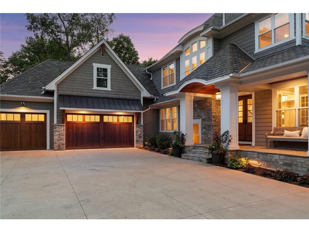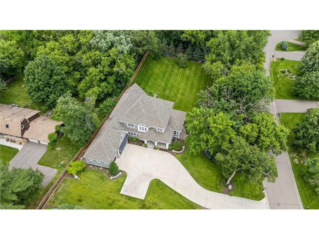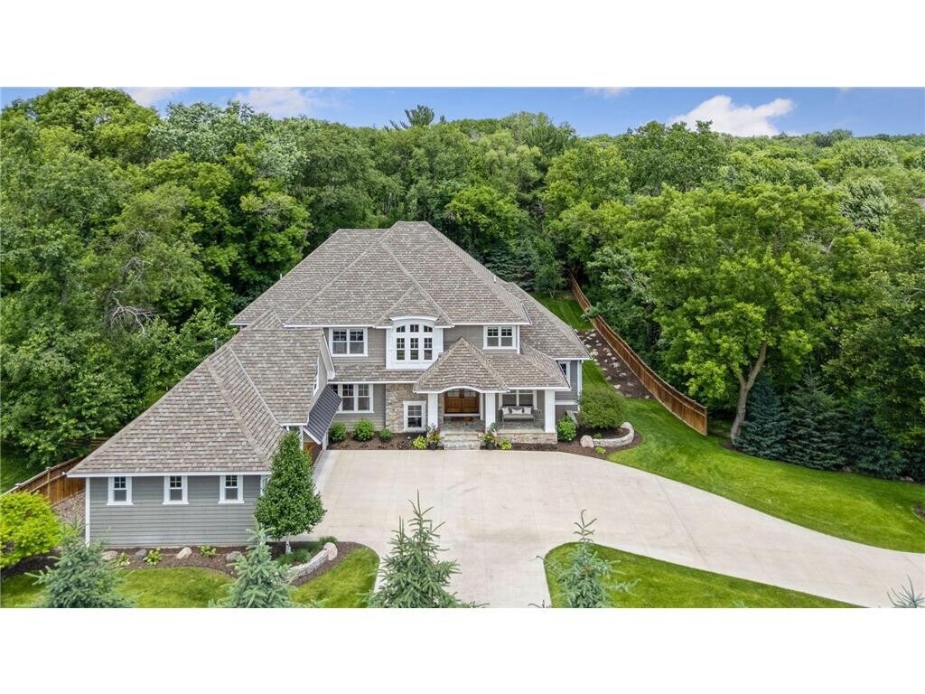 Welcome to 2890 Ella Lane—a stunning custom two-story Gonyea home in Minnetonka, set on nearly an acre at the corner of a quiet cul-de-sac. Built in 2016, this 5BR, 5BA home offers 5,127 finished sq ft plus 940 sq ft unfinished with a bathroom rough-in. The main level features coffered ceilings, exposed beams, abundant natural light, and a gourmet kitchen with Sub-Zero and Wolf appliances. Restoration Hardware lights brings elegance, complemented by classic hardwood floors throughout. The vaulted primary suite offers spa-like bath with Victoria + Albert limestone tub and a custom walk-in closet. All upper bedrooms include private baths and vaulted ceilings. Step outside to a covered backyard patio with a retractable Phantom screen, overlooking a private backyard framed by mature trees—ideal for relaxing or entertaining. Minutes from Ridgedale Mall, Minnetonka Regional trails, and major highways. Zoned Hopkins Schools with open enrollment to Minnetonka. 3D tour and floorplan available.