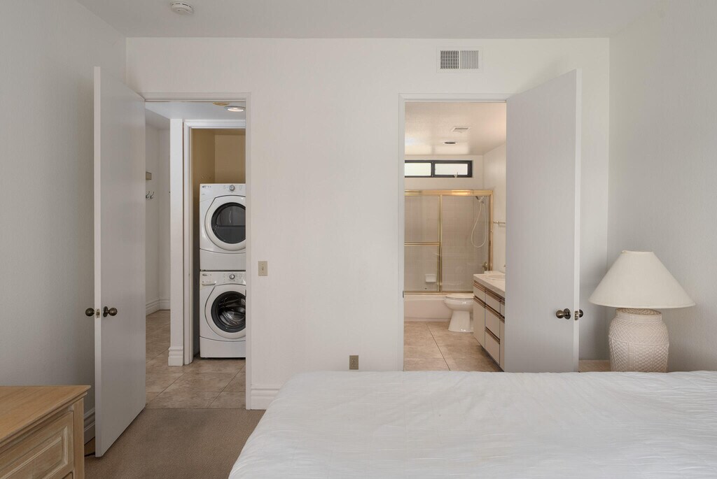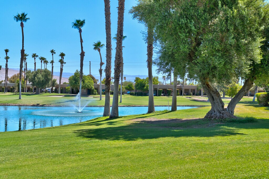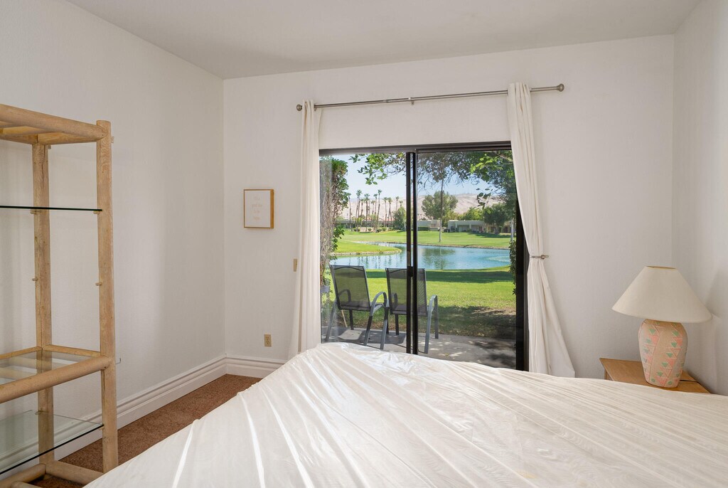 JUST LISTED!! Rarely available PARTIALLY FURNISHED - LAKEFRONT 2BR 2BA condo with dual master suites,each with ensuite baths and large walk-in closets,opening to the patio. Large central living area opens to large patio facing the golf course,overlooking the fairway at the Cielo #9 golf hole. Located just steps from your own semi-private pool and spa. Includes 1-car garage and golf cart parking spot. Tenant pays utilities,but Spectrum CATV,internet and wifi is included,as is full access to resort amenities,country club,fitness center,tennis and golf (green fees are extra). Desert Princess Palm Springs is a luxurious resort close to freeway,downtown Palm Springs and Palm Desert.
