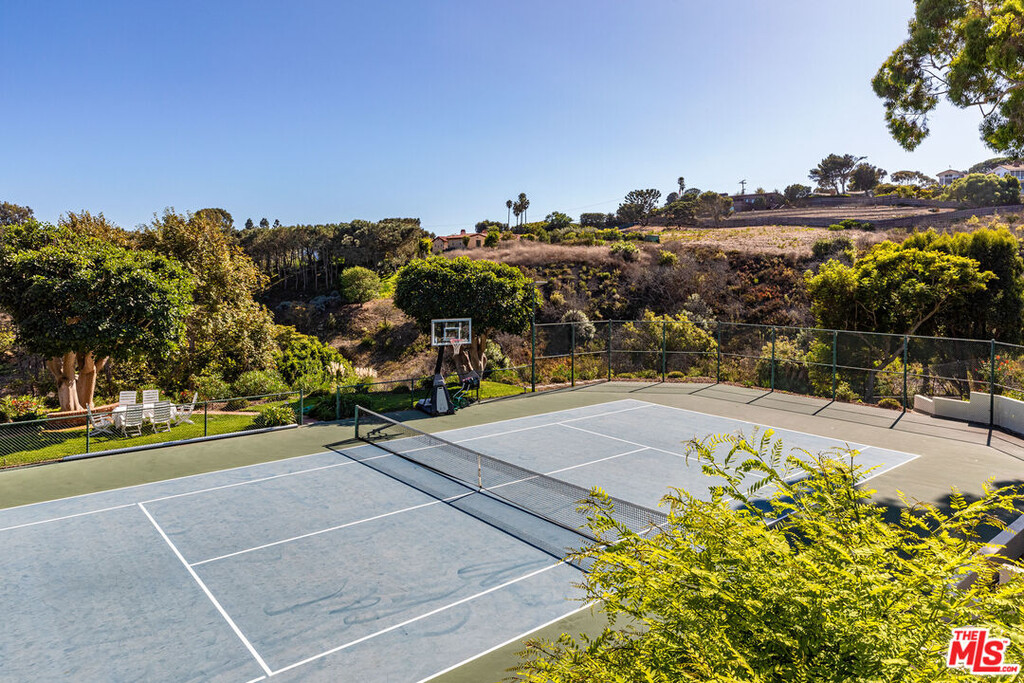 A Soulful Sanctuary and Tennis Estate by the Sea. Once in a lifetime opportunity to live an inspired life infused with nature that will make your soul blossom. Crafted by award-winning architect Marshall Lewis, this breathtaking Point Dume estate is more than a home - it's a living work of art. This elegant residence invites you to experience the indoor/outdoor "Way of Life" filled with the magic of nature. A place to live artfully, expansively, and fully immersed in the rhythm of nature. Every room offers nature-kissed views, every detail speaks of elegance and peace. With six bedrooms, five baths, and a versatile office/media room, the home adapts to your every need - a creative space, restful haven, joyful gathering place. Features: A saltwater pool and spa. A tennis court with breathtaking views. Soaring Douglas Fir beams. A chef's kitchen with a generous center island designed for conversation, celebration, and connection. The home's symmetry and balance create harmony and a place of peace and a sense of well-being. The primary suite offers a fireplace, spacious walk-in closets, and a luxurious new master bathroom. A home filled with light, love and exclusive deeded beach access to one of the best beaches in the world, in one of the most sought after neighborhoods in all of Malibu - Point Dume. Located near the trails of a Nature Preserve and the expanse of Westward Beach. A shoreline where dolphins dance daily, where the sun slips behind the sea in brilliant ceremony, and where barefoot walks become sacred ritual. A lifestyle. A sanctuary. What are you waiting for? MLS# 26653151