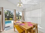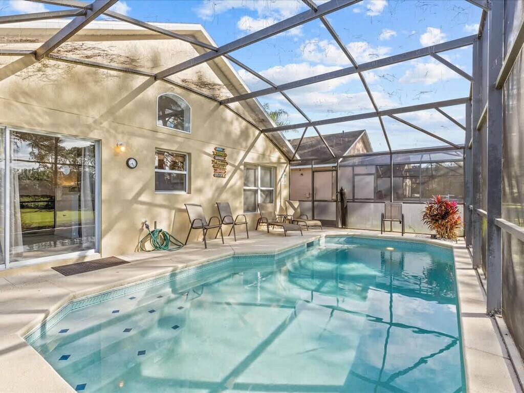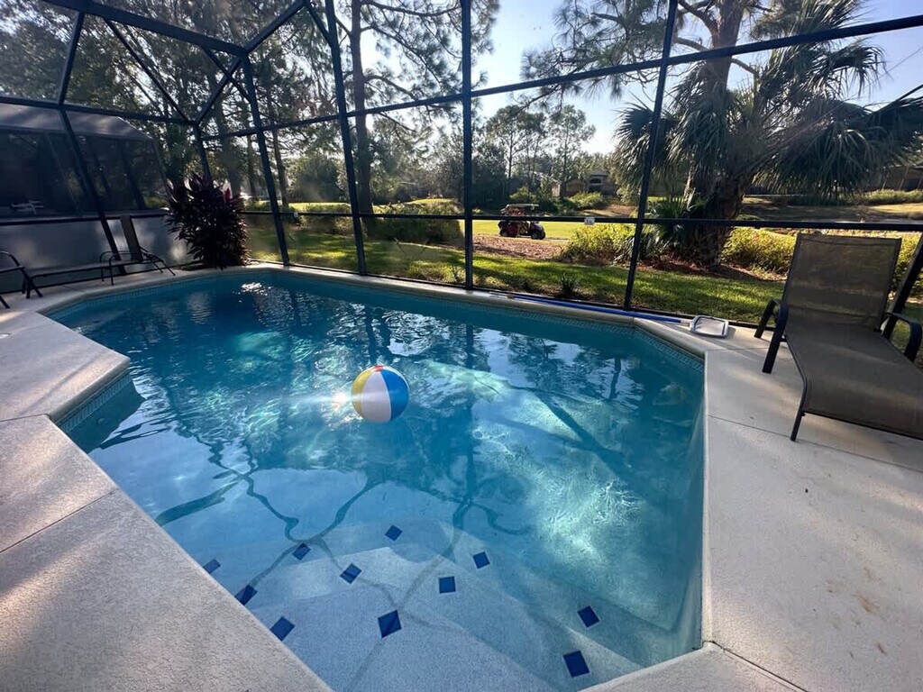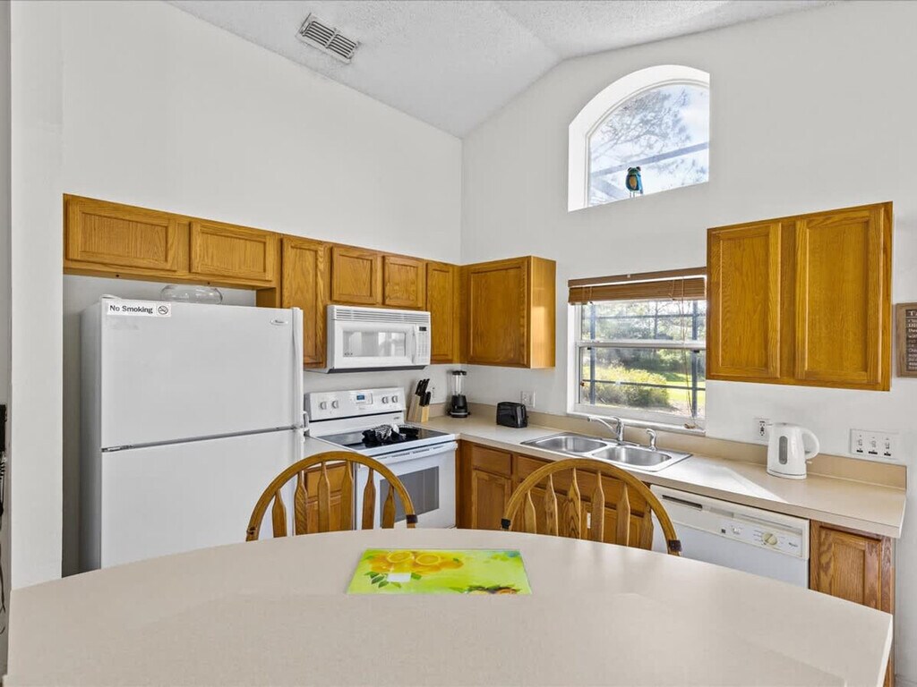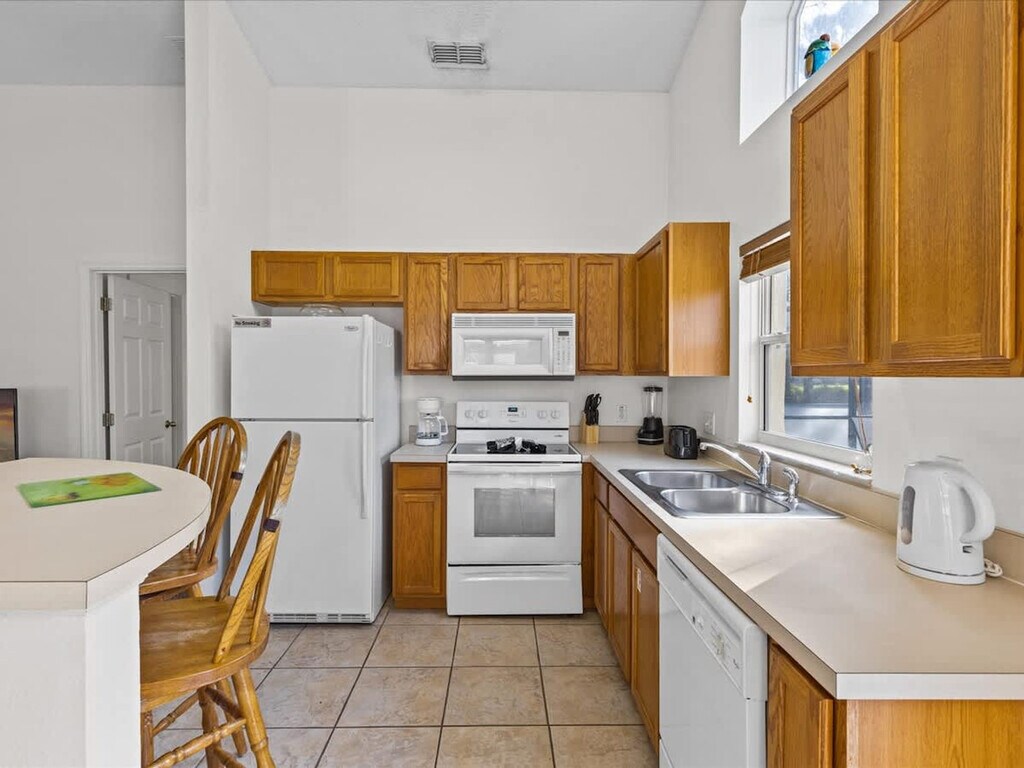Looking for a relaxing getaway with a golf course view? This charming single-story 3-bedroom 2-bathroom home is located in the beautiful Southern Dunes community in Haines City, Florida, offering stunning views of the golf course and a peaceful atmosphere for golfers and families alike. Whether you're an avid golfer or just looking for a relaxing vacation, this home is perfect for your stay, accommodating up to 6 guests. The home features a king-size bed in the master suite, a queen-size bed in the second bedroom, and two twin beds in the third bedroom, providing convenience and privacy for families or small groups. Enjoy stunning golf course views right from the private screened-in patio, a spacious living area with comfortable seating and smart TV, and a fully equipped kitchen with modern appliances, cookware, and dining essentials. The property also includes a game room with a pool table, high-speed Wi-Fi, smart TVs in every bedroom, central air conditioning, and a washer and dryer for added convenience. Parking is available with a private driveway for one vehicle and additional street parking. Optional services are available for an extra fee, including pool heating, BBQ grill rental for outdoor cookouts, and theme park ticket sales to all major attractions. Welcome to Southern Dunes Golf and Country Club, nestled in the heart of Central Florida. This peaceful, upscale gated community is known for its beautiful landscaping, friendly atmosphere, and award-winning golf course. The community offers resort-style amenities including a clubhouse with a restaurant and bar, community swimming pools, tennis courts, children's playgrounds, a fitness center, and walking and biking paths. Southern Dunes is conveniently located in Haines City, just south of Davenport, providing easy access to major attractions such as Walt Disney World, Universal Studios, SeaWorld, and LEGOLAND Florida, as well as shopping and dining options nearby. The property is strictly non-smoking and non-vaping, with a minimum fine of $500 for violations. Pets are not permitted, and if discovered, there is an automatic charge of $450 for cleaning. Quiet hours are observed between 10:00 PM and 6:00 AM. Check-in is at 4:00 PM, and check-out is before 10:00 AM. A late check-out can be arranged for an additional fee if the home does not have another guest's arrival scheduled. Guests must adhere to all community and Homeowner Association rules, including parking regulations and no events policy. Failure to comply with any terms will result in eviction without refund.