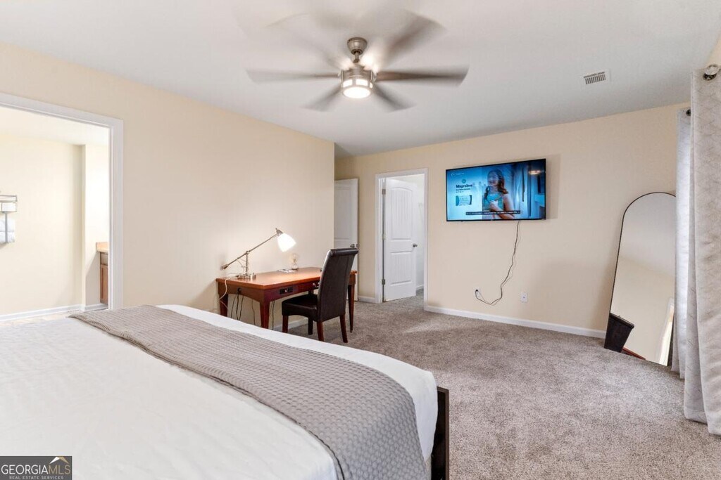 Welcome to 2896 S Hills, An exquisite residence in Riverdale, GA, where elegance meets modern convenience. This stunning home boasts 2,580 square feet of thoughtfully designed living space, offering five spacious bedrooms and three pristine bathrooms. Upon entering, you are greeted by an elegant foyer that leads to a versatile open-plan layout. The living areas feature a sophisticated blend of carpet and laminate floors, providing both comfort and style. The gourmet kitchen is a chef's delight, complete with ample cabinetry and a convenient pantry for all your culinary needs. Main floor includes a convenient guest bedroom and full bath, while upstairs offers four generously sized bedrooms and two full baths. The primary suite is a serene retreat, offering ample space and a well-appointed bathroom. Each additional bedroom is generously sized, ensuring comfort for all residents. This home is equipped with essential modern amenities, including air conditioning and forced air heating, ensuring year-round comfort. The attached garage provides convenient parking, while the private outdoor space offers a tranquil setting for relaxation. Experience the perfect blend of style and functionality in this Riverdale gem, ready to be your next home.