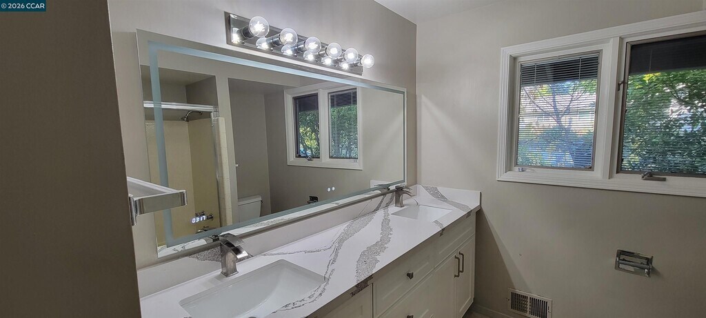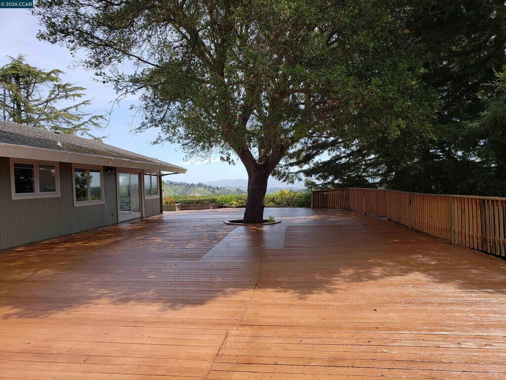 Welcome to this inviting Lafayette retreat! Enjoy over 2,400 sq. ft. of interior living in this spacious home offering 4 bedrooms and 3 full bathrooms. The main house includes 3 bedrooms and 2 newly renovated bathrooms. An attached bonus room offers an additional (1) bedroom and (1) bathroom with a bar area—ideal for guests,a home office,exercise room,or extra bedroom. Enjoy outdoor living on the expansive synthetic wood deck. A private garden is complete with mint,tomatoes,parsley,basil,and dill. Tenants are welcome to plant additional herbs or vegetables. This home offers two stunning views: sweeping views of Mt. Diablo with sparkling city lights at night,and serene views of the wooded hillside. Located on a private cul-de-sac,it’s just minutes from top-rated Lafayette schools,downtown,restaurants,the library,reservoir,freeway,and BART. Interior features include a remodeled kitchen and bathrooms with dual sinks,LED mirrors,fresh paint,and hardwood flooring throughout. Additional amenities include: central heating and air conditioning,washer/dryer,plenty of storage,new roof,attached 2-car garage,plus driveway and outdoor parking. Pet Policy: Cats welcome. Small,well-trained dogs under 20 lbs considered. No smoking. Landlord covers: Landscaping