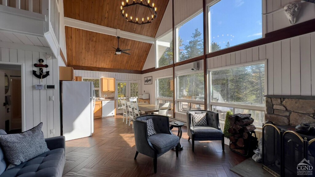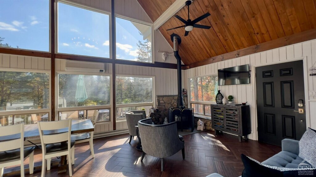 Patricia MeyersLakefront Chalet@ Sleepy Hollow Lake available for seasonal rental. A great way to experience lake living first class!!! This recently renovated home boasts great open floor plan on main level with woodstove to sit by and warm up on chilly days. First floor bed and bath complete this main level. Upstairs are 2 add'l beds and bath for children or guests. The lower walk out lakeside level has a large family room 4th bedroom, laundry, utility room and great access to the gently sloping property to your private dock. The wraparound deck offers great outdoor space as well. Call TODAY to inquire about renting this home. Sleepy Hollow Lake is only 40 min to Hunter/ Windham Ski Mts which makes this a great winter ski home with lake living too!!!Available for rent from 11/15/23-6/14/24
