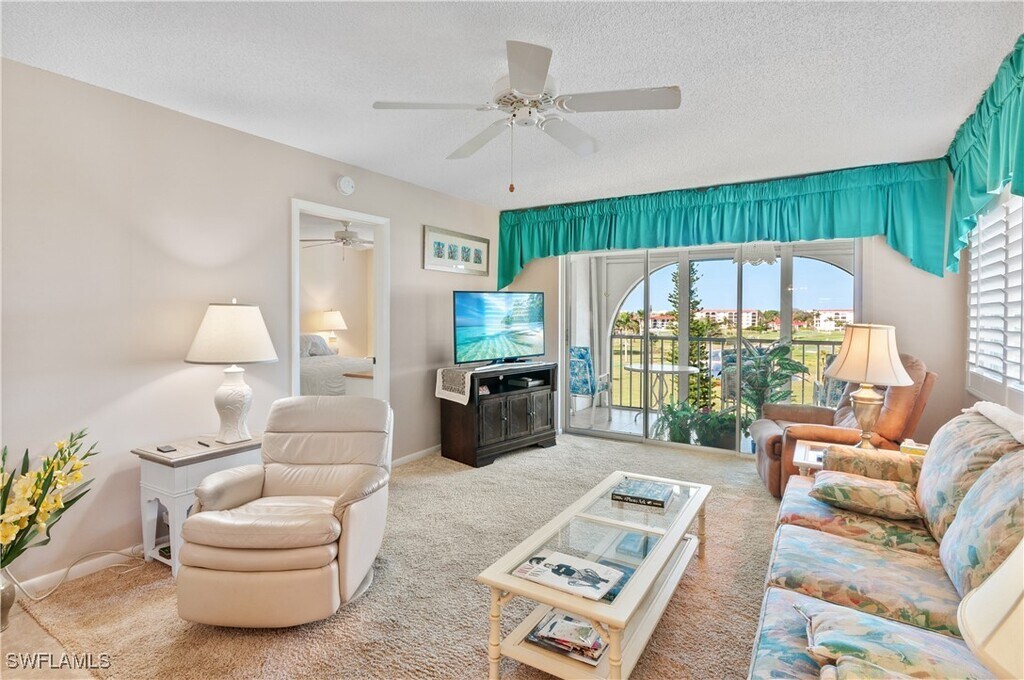 Rarely available,top floor corner condo in High Point Country Club. Amazing sunsets,and even more amazing evenings watching the lights twinkle in the distance. Both bathrooms have been updated. Tile in the kitchen and dining room,nice carpet in living room and bedrooms. The condo is turnkey furnished. Enjoy High Point Country Club's amenities,golf daily,tennis,pickleball,6 pools with aquatic classes,fitness room,all included in your rental rate. The clubhouse offers dining and many social activities. If you love to walk,it is one mile to walk around the community. Plus,it is only 1.5 miles to the beach,3 miles to downtown Naples,and surrounded by shopping and dining. Perfect location. One covered parking space,plus guest parking. Laundry is in the residence. Impact windows and hurricane shutters,newer AC and water heater. This is a 55+ building.