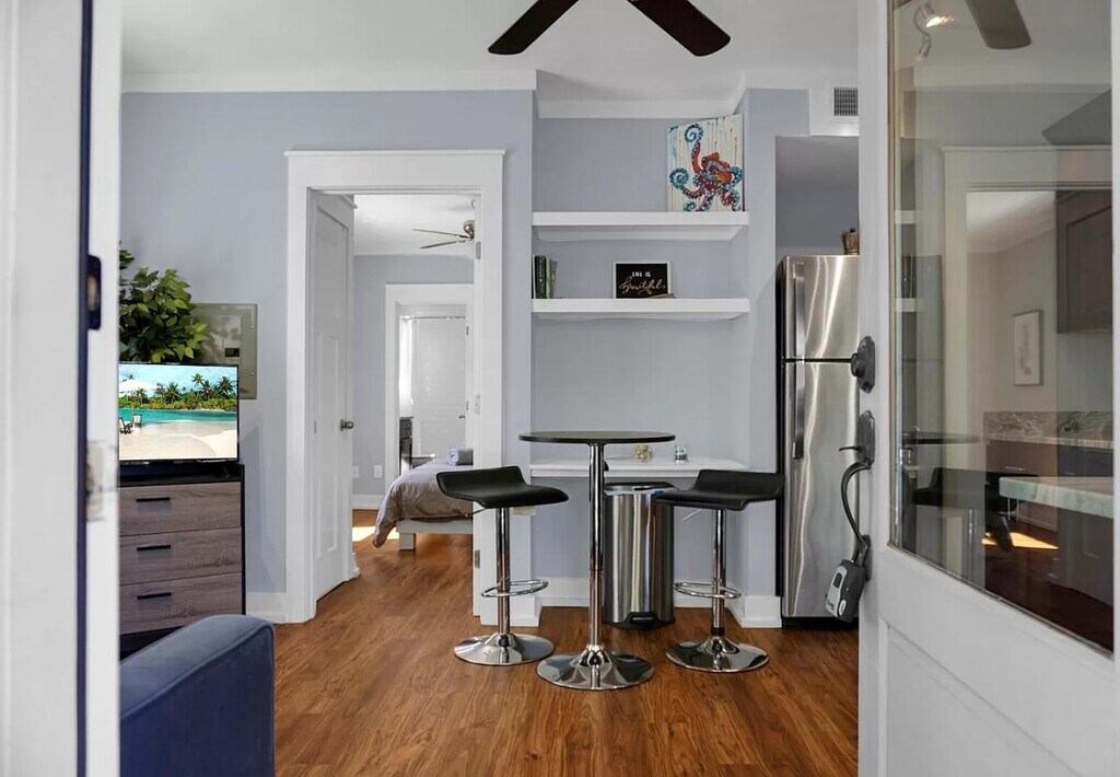 FULLY FURNISHED!!! schedule a showing to see this gorgeous centrally-located home. Midcentury meets local antiques in this newly renovated, Carolopolis Award-winning home. Located a short walk from King Street, MUSC, The Citadel, Joseph P. Riley Park, and Hampton Park! The bedroom features a king sized bed, ensuite bathroom, and a private back porch. Enjoy the fully updated kitchen with stainless steel appliances, gas stove, Keurig machine, and marble countertops. All utilities are included, and ample off-street parking is offered at no additional cost.Available July 1 2026 .