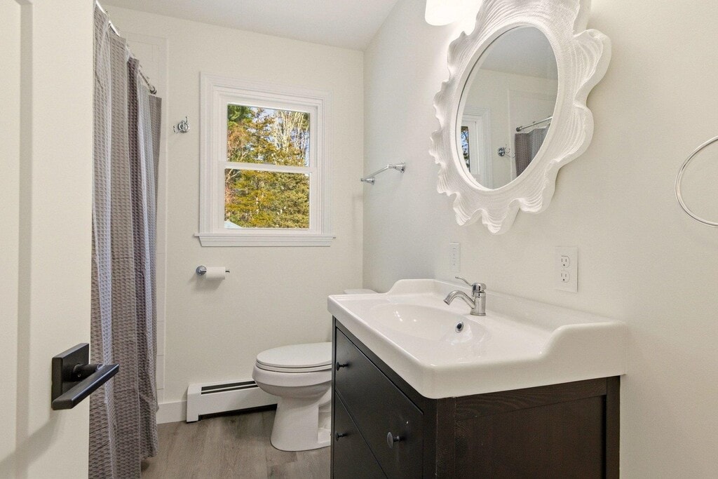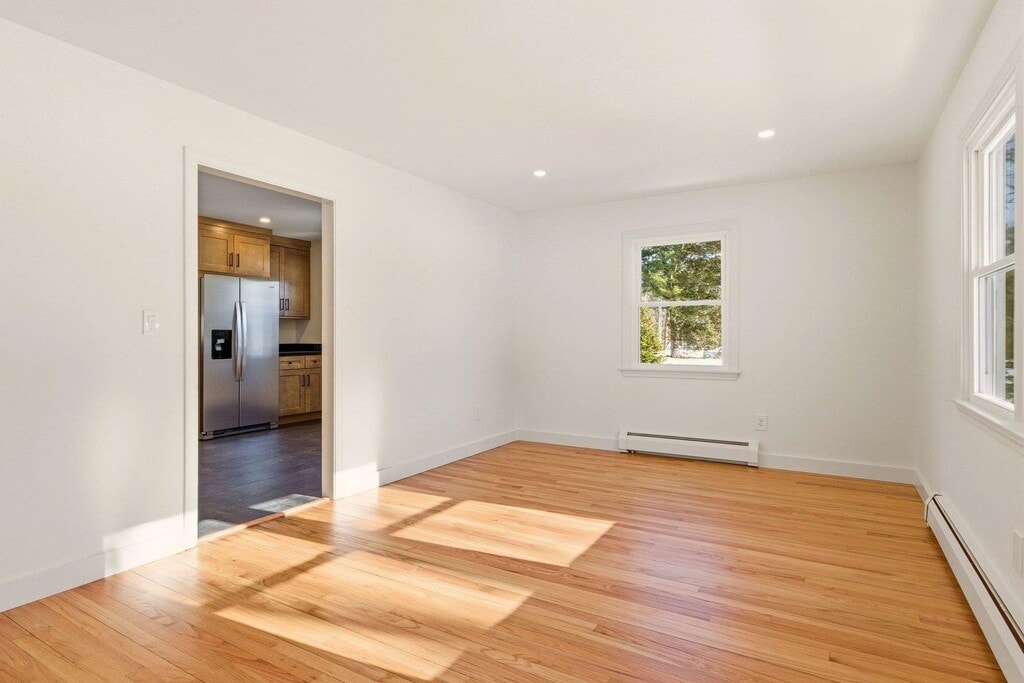 BEAUTIFULLY UPDATED- Renovations have just finished at this immaculate, turnkey 4-bedroom, 1-bath single family home w/two car detached garage. Set in a desirable neighborhood on a phenomenal 1.3-acre lot, WALKING DISTANCE to Stratham Memorial Elementary School and the Stratham Hill Park trail system, a great commuter location w/easy access to Routes 33, 108 and 101. Inside you will find spacious sunny rooms loaded with natural light. The main floor boasts a new eat-in kitchen w/leathered granite tops, soft close cabinetry and a suite of Whirlpool stainless appliances. Completing the first floor is a renovated full bath with tub, a spacious living room and two comfortable bedrooms. Upstairs are two additional bedrooms with ample closet space. Recent updates include fresh interior/exterior paint, refinished oak hardwood flooring, new recessed lighting, new doors & hardware, new baseboard trim and efficient vinyl windows. The unfinished basement offers a laundry area, excellent storage and workshop space. Outside, you will find a fenced rear yard and plenty of room to garden and play. One dog may be considered for an increased rental fee of $100 per month, sorry no cats. Tenants are responsible for electricity, cable, internet, heating fuel (Oil), lawn and snow removal. 12-month minimum lease, credit & background check required, no smoking property. Set up your private tour today! MLS# 5078738