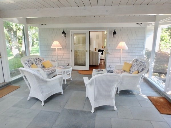 THIS IS A WEEKLY SUMMER RENTAL ONLY.THE WEEKLY PRICE IN AUGUST IS $12,500. PER WEEK.SEE WEB SITE FOR ADDITIONAL WEEKLY PRICING. Waterfront home in spectacular location overlooking the Vineyard Sound and the Elizabeth Islands. This casual and comfortable single level 4 BR 3 bath home has central air and heat. Enjoy summer star-studded skies from your patio or through skylights in each bedroom. Open living dining area. Small but functional galley kitchen. The glassed-in breezeway offers comfortable wicker furniture to relax in while reading and looking at the gardens. The cottage,attached to the breezeway,is a family great room with plasma TV,Internet access,game table area,studio kitchen: and a bathroom with Jacuzzi tub and steam generator glass shower. A boardwalk leads you to a hot tub with a table surround to use for lunch. Nearby is a hot/cold shower. MLS# 72844878