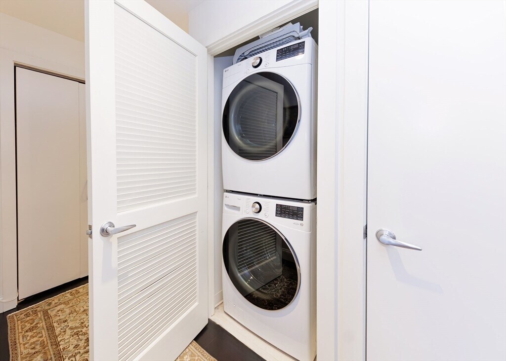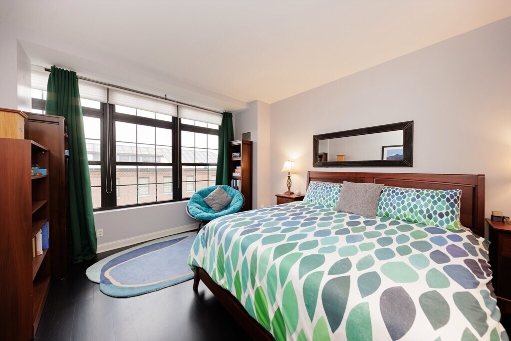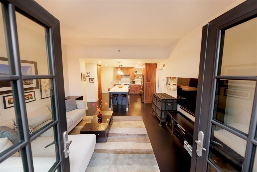 Chic & airy,this exquisite penthouse 2-bed/2 full bath apartment with 1 garage parking stuns with a Juliet balcony above the treetops of the picturesque side street. Southern sun splashes ebony floors through magnificent French doors. Ideally placed on the quiet,top floor of the building with easy access to the common rooftop right above. High ceilings and enormous windows exponentially enhance this luxury unit. The stunning renovated kitchen,with storage tucked everywhere,has an impressive expandable quartz island that seamlessly connects the bright open living/dining/kitchen spaces. The primary suite features a marble bath,and multiple closets,while the spacious second bedroom sits opposite the guest bath. Washer/Dryer and built-in storage maximizes organization. Enjoy 24/7 concierge service,a fitness room,library,courtyard,and expansive roof deck. Convenient to Kendall Square’s buzzing biotech,restaurants,bars,the Esplanade,MGH,Cambridge Crossing,and all Transit MLS# 73449700