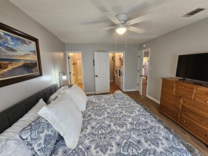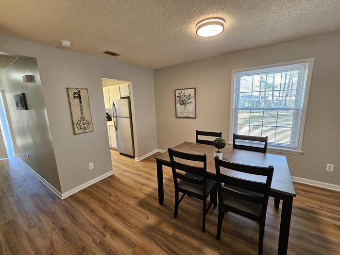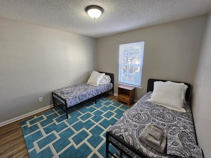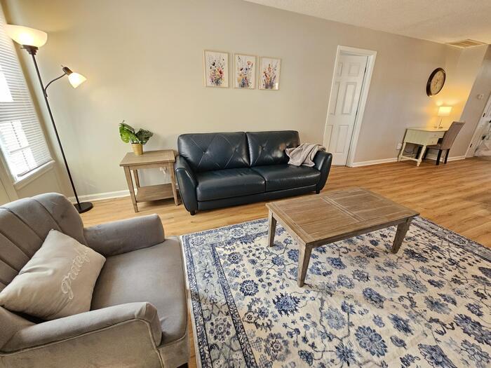 Fully Renovated in 2025. All new LVP floors, paint, fixtures etc..Located on a cul de sac and backs up to woods. This mid term rental is a quiet respite that is great for travelers. Primary bedroom has a King Size bed and the guest room has 2 Twin XL beds all with memory foam mattresses. Contact us to schedule a showing.