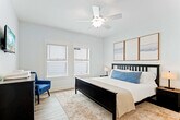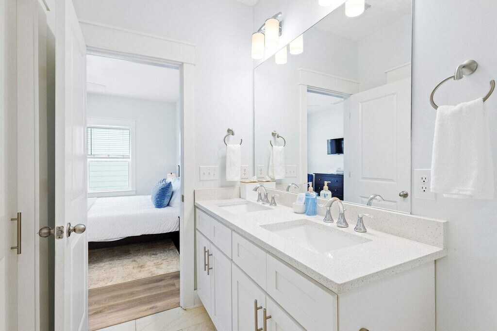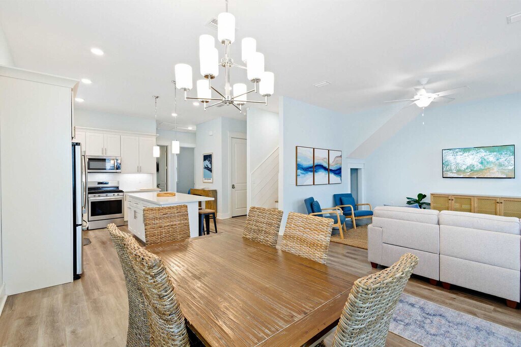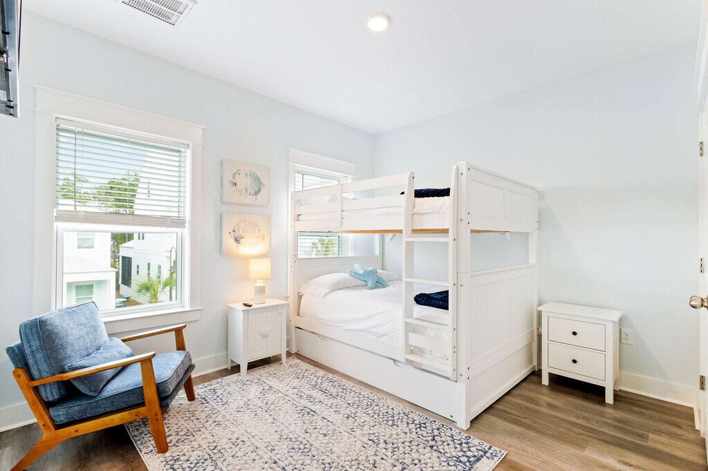 This stunning 4-bedroom beach house in Santa Rosa Beach, FL, offers everything you need for an amazing vacation. Located just minutes away from the beach, this spacious 2-story home is perfect for families and friends. With 4 bedrooms, 3 bathrooms, and accommodations for up to 11 guests, it’s designed for unforgettable getaways. Enjoy the community pool, a 2024 golf cart, and a game room with Giant Connect 4 and arcade games. Feel at home with a fully stocked kitchen, TVs in each bedroom, and a dedicated workspace. Escape to paradise at this Santa Rosa Beach retreat, where modern comfort meets coastal charm. The main spaces of the home include four bedrooms and three bathrooms, with two bedrooms on the upper level featuring king-sized and full bunk beds with a trundle twin-sized bed, and two bedrooms on the main level with a queen-sized and another king-sized bed. Each bedroom is equipped with a smart TV, nightstand, lamps, and plush chairs. The chef’s kitchen boasts high-end stainless appliances, a large refrigerator, ample cabinetry, a Keurig coffee maker, and a large island with high seating. The living room features a 55" smart TV, a large plush sofa, and an open floor concept connecting the kitchen and dining area. The game room offers a Giant Connect 4, two arcade/video games, and a plush sofa. Guests can enjoy access to a refreshing community-shared pool during their stay. Parking is available for two cars in the driveway, with additional parking on Charming Way for overflow if needed. A 2024 golf cart is available for use, accommodating up to six passengers. Located in the heart of 30A, this beach house is just minutes away from the beach and offers easy access to local attractions. Explore Grayton Beach State Park, Seaside, Gulf Place Town Center, and the Blue Mountain Beach Creamery. Enjoy a picturesque drive along the 30A Scenic Highway with breathtaking views, unique beach communities, and plenty of local dining spots. Nearby restaurants include The Red Bar, Chanticleer Eatery, Cafe Thirty-A, Stinky’s Fish Camp, and The Perfect Pig. Check-in is at 4 pm and check-out is at 10 am. The minimum age for check-in is 30 years old. No pets are allowed. Smoking is strictly prohibited inside the property and in outdoor areas, including porches and the backyard. A fee of $300 will be charged for each room that has a smoke odor to cover smoke removal services. Parties are strictly prohibited, and if a party takes place, a $200 extra cleaning fee will be charged for excessive mess or damage. Quiet hours are between 10:00 pm and 7:00 am. There are three security cameras located in the doorbell, rear yard, and side yard by the trash, solely to keep track of the cleaning team. Street parking is not allowed, and you may be towed if parked on the street. The home includes a dedicated workspace, ensuring a comfortable environment for remote work. A laptop computer is not included. Registration Number: DBPR #DWE7605204 [SI]