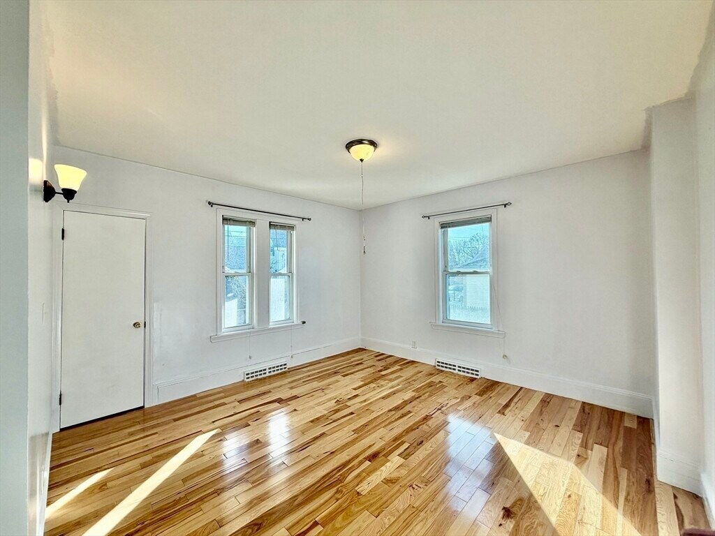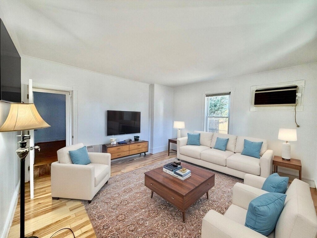 Quiet and desirable neighborhood. Minutes’ walk to the T station and one-minute drive to major highways and shopping,including BJ’s,Home Depot,and Lowe’s. Bright and spacious first-floor 2-bedroom,1-bath apartment,fully renovated with a brand-new kitchen featuring granite countertops and hardwood floors throughout. Central heating and central air conditioning on the first floor. Maintenance-free aluminum siding. One assigned parking space on a long,wide driveway,plus additional on-street parking. Fenced-in backyard with patio,ideal for gardening or outdoor enjoyment. Laundry available in the basement. Applicants must have strong credit,verifiable income,and rental references. Non-smokers only. MLS# 73461976