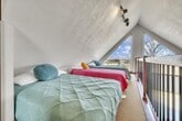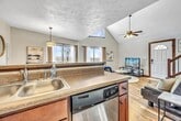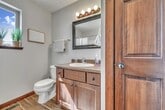 Bedding Summary: Guest Bedroom 1: Queen bed Guest bedroom 2: Queen Loft: Twin bed 2 Full beds Living Room: Futon You'll love staying at The Fireside Fun Cabin at Bridges Bay Resort. Temporary residency in this cabin includes your utilities and six daily passes to the Bridges Bay Resort waterpark. Conveniently located close to the cabin entrance. The home offers a main floor bedroom with a queen sized bed and bathroom just across the hall. Also on the main level is a fully stocked kitchen, dining area, and living room with smart TV. Off the dining area is a private patio with private back yard, a propane grill, and additional seating. The living provides a full sized klick clack for extra sleeping. The second level offers another full bathroom with tub and two additional sleeping spaces. The second bedroom provides a queen bed and the sleeping loft offers two full sized beds and a twin bed. This property can sleep a total of ten guests. This property is professional hosted by Okoboji Vacation Company.