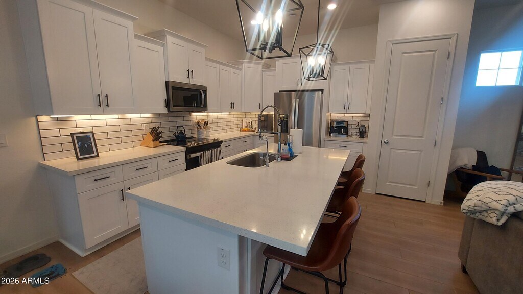 Absolutely stunning 3 bedroom,3.5 bath home in a private enclave of newer homes,on a premium corner lot! Cool,contemporary color palette! Plank-style ceramic tile throughout the main level! Highly upgraded island kitchen includes stainless appliances,pendant lighting,quartz counters! Upstairs,all three bedrooms are ensuite! Washer,dryer,and fridge are all included! There's even a whole-house water filtration system! Just down the street from the community pool and tot lot! Hurry to this one!
