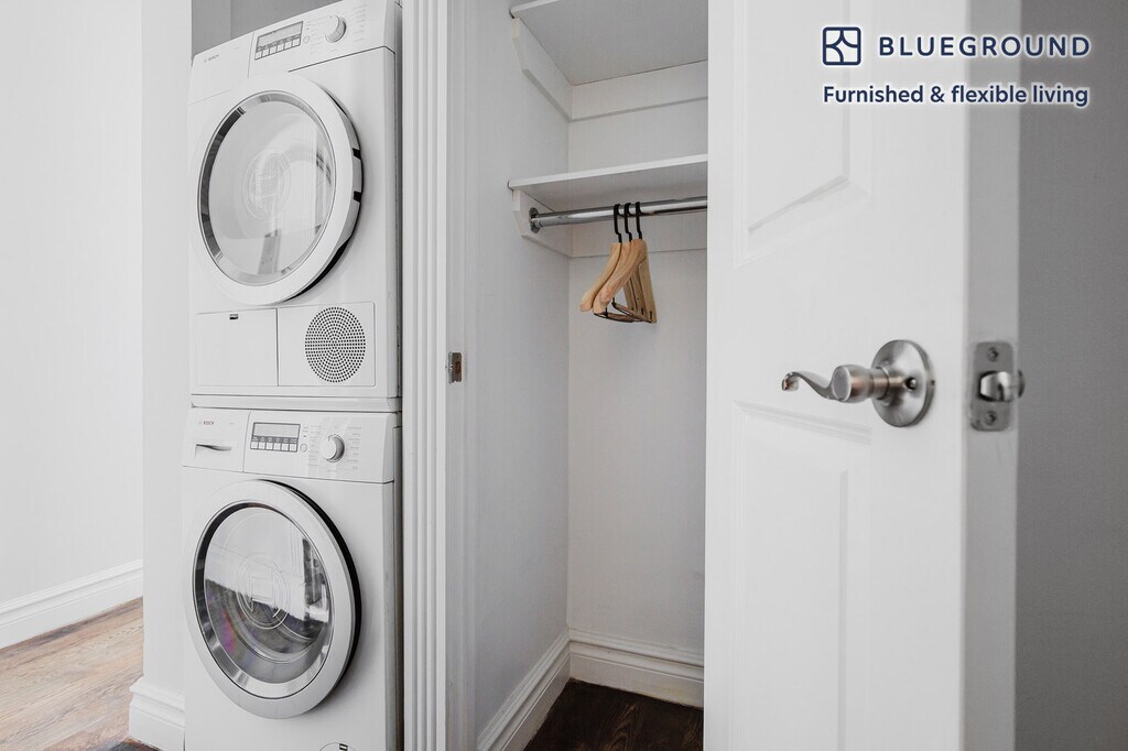 Discover the best of New York, with this one bedroom apartment in West Village. It’ll be easy to simply show up and start living in this furnished apartment with its fully equipped kitchen, living room, and our dedicated, on-the-ground support. (ID #NYC1592) The advertised rate of $5,360/month is the lowest available price, based on a 6 month(s) and 6 day(s) stay with a move-in date of October 6, 2026. If you’re looking for a 1-year stay, the rate is $5,560/month. Rates vary depending on the duration of stay, season, and other parameters. For exact pricing and additional pricing components, please visit our website and enter your desired move-in and move-out dates. The rate is applicable when billed upfront; it can be higher if billed in multiple payments. Brokers are welcome to reach out. Were you looking for an unfurnished lease? Try Blueground instead and upgrade from unfurnished to furnished living: - Furnished at rates comparable to unfurnished - No setup or furniture costs - save thousands - Move-in ready - save time, just bring your suitcase Designed with you in mind As with any Blueground apartment, you’ll find a thoughtfully designed space complete with beautiful furniture and a fully equipped kitchen in this one bedroom property. And, thanks to our superior quality mattresses, fully stocked linens, and towels, you can relax knowing you’ll always feel comfortably at home. When you’re ready for some fun, you can take in the New York vibes or bring the entertainment to you with the premium wireless speaker or smart TV. This apartment also offers in-apartment laundry. Sleeping arrangements Queen Bed, 63in/160cm Amenities Building amenities unique to this one bedroom apartment include an on-site: - Dryer - Elevator - Washing machine - Pets allowed Arrival and ongoing support The entire apartment is yours to enjoy! Throughout your stay, you’ll have access to our Client Experience team through the Blueground App. You can schedule additional cleanings, submit maintenance requests, and view our neighborhood recommendations with just a few taps. We’ll share all details upon confirmation of your stay. Ideally Located This furnished rental is located in the West Village. Cute storefronts and some cobblestone streets give the charming neighborhood the feel of a quaint small town. Populated with shoppers, diners and art lovers. The historically artistic area has numerous piano bars, cabarets, and theaters to discover. Both Times Square and Wall Street are just 15 minutes away by subway. Other things to note This Blueground apartment has flexible lease options, allowing you to book it for one month, a year, or more. Pets are welcome, though weight limits and breed restrictions apply and may incur fees. Brokes CYOF. We take great pride in ensuring every photo displayed is shot in our own units with our actual furnishings. That said, we regularly refresh our decor and furniture arrangement, which may differ from what’s pictured. [SI]