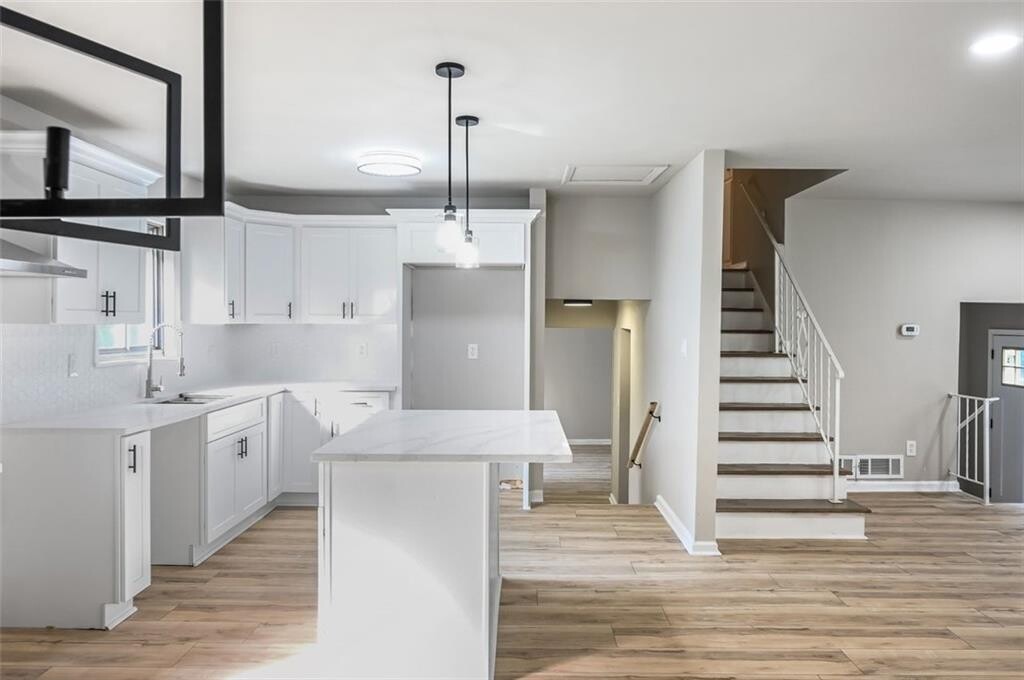 Welcome Home to this wonderful,two-story,split-level modern house! This property has been completely renovated and you’ll be delighted by the ample living space,modern fixtures,and detailed amenities. The street level features the entry foyer,an expansive living room,and a cozy half bathroom. The upper,split-level has enough space to comfortably accommodate a secondary living room along with a dining area and modern kitchen with decorative stone counters,an island and the most convenient in updated appliances. The basement level of this property features even more space that can be used as a rec room,office,or whatever your heart desires! There’s a basement level laundry room and access to the backyard. The upper level is for rest and relaxation,featuring the primary bedroom,which has its own bathroom and two secondary bedrooms with access to a separate,full bathroom. The only thing you need to do is to bring your furniture!!
