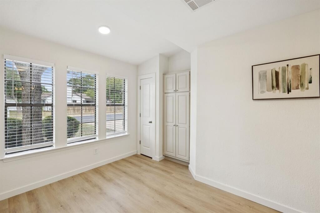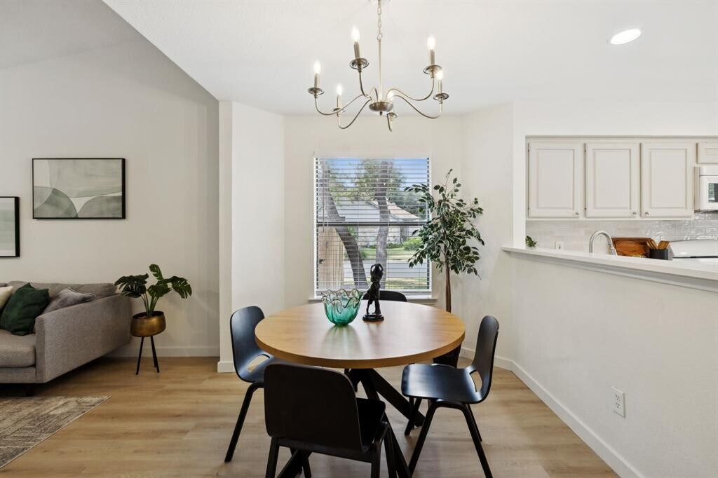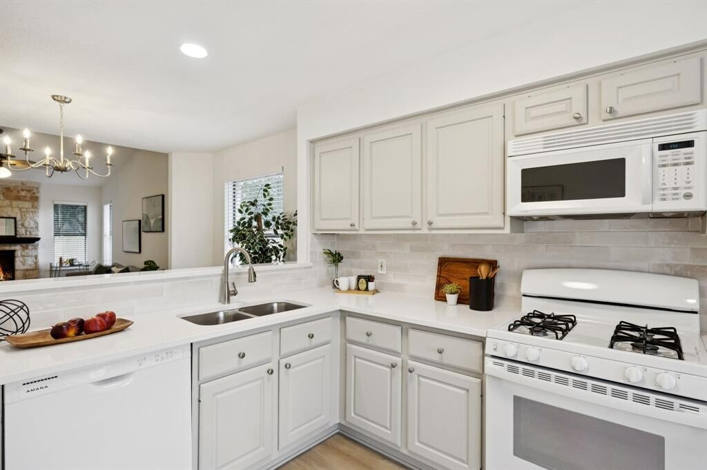 Welcome to 2900 Sabinal Trail – a spacious and inviting two-story home nestled on an oversized corner lot filled with gorgeous oak trees that provide tons of shade and a peaceful backyard vibe! The flexible floor plan is ideal, with the primary bedroom conveniently located on the main floor and three additional bedrooms upstairs. You'll love the freshly updated interior, featuring brand-new paint throughout, stylish new kitchen countertops and backsplash, new doors and trim, updated lighting, and durable LVP flooring. Plus, all new kitchen appliances—along with a new washer and dryer—have been added, though they are not reflected in the current photos. Step outside to a huge backyard with a deck that's perfect for weekend BBQs or evening hangouts, plus a separate storage shed and a fully fenced dog run or bonus storage area. Tucked in a quiet neighborhood just off Anderson Mill Road, you're close to everything – great schools, parks, Twin Creeks Country Club, Lakeline Mall, H-E-B, and tons of shopping and dining options. This home is move-in ready and offers plenty of space for your whole crew to spread out and enjoy
