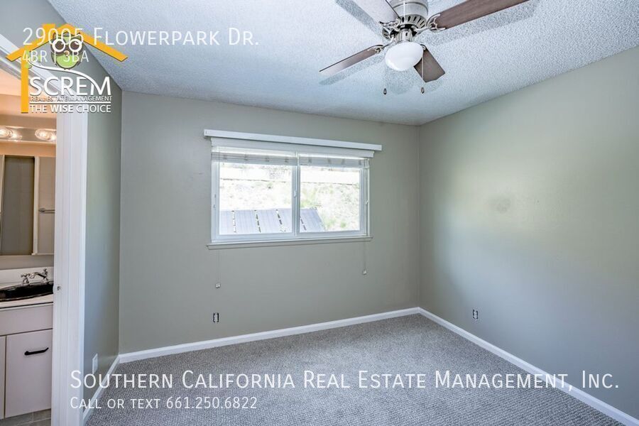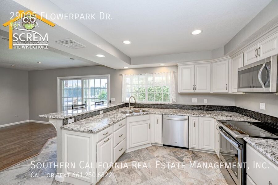 Beautiful four-bedroom, three-bathroom pool home located on a quiet flag lot in Canyon Country. This inviting home features soaring vaulted ceilings, an open-concept living and family room with wood flooring, a cozy fireplace with mantel, recessed lighting, and built-in shelving. The dining area includes a ceiling fan and additional built-in storage and flows seamlessly into the upgraded kitchen, complete with granite countertops, white cabinetry with brushed-silver hardware, a convenient breakfast bar, and essential appliances, including an electric stove, single oven, microwave, and dishwasher. Off the kitchen is the family room with sliding glass doors to a private backyard retreat featuring beautiful mountain views, a storage shed, and a private sparkling pool. Downstairs, you’ll find one bedroom with carpet flooring and easy access to a bathroom with a walk-in shower, perfect for guests or a home office setup. Upstairs features a spacious primary suite with double-door entry, ceiling fan, walk-in closet with built-in storage, and an attached bathroom with a relaxing Jacuzzi tub and a separate walk-in shower. Two additional guest bedrooms are also upstairs. One with a ceiling fan, the other bedroom has a built-in desk, instead of a closet. Both bedrooms share a convenient Jack-and-Jill bathroom with dual sinks. Additional highlights include fresh paint, new carpets, an indoor laundry area with washer and dryer hookups, an attached two-car garage, and RV hookups. Conveniently close to shopping, restaurants, and the 14 freeway. *Owner may consider a pet. **The owner will provide a refrigerator if the tenant does not bring their own. For inquiries about this property, please email . To schedule a viewing appointment, visit