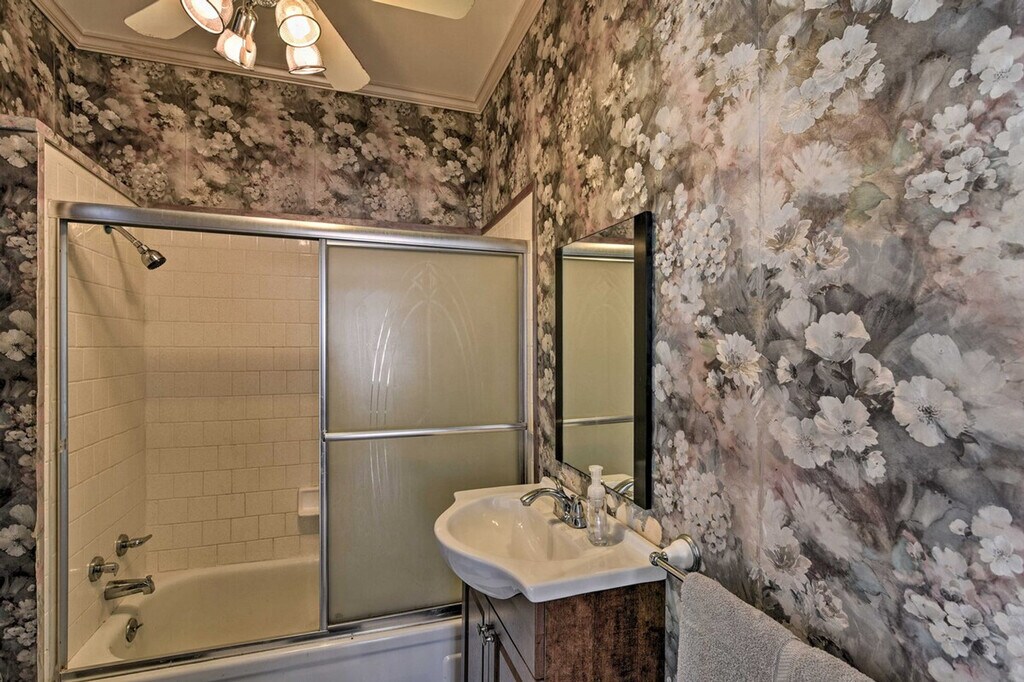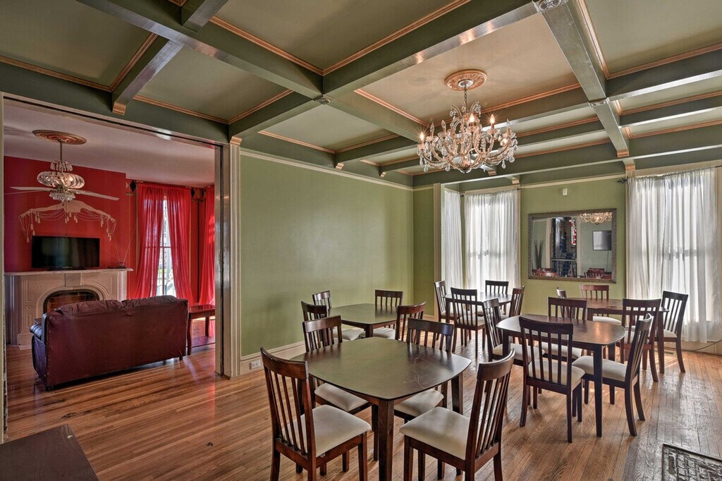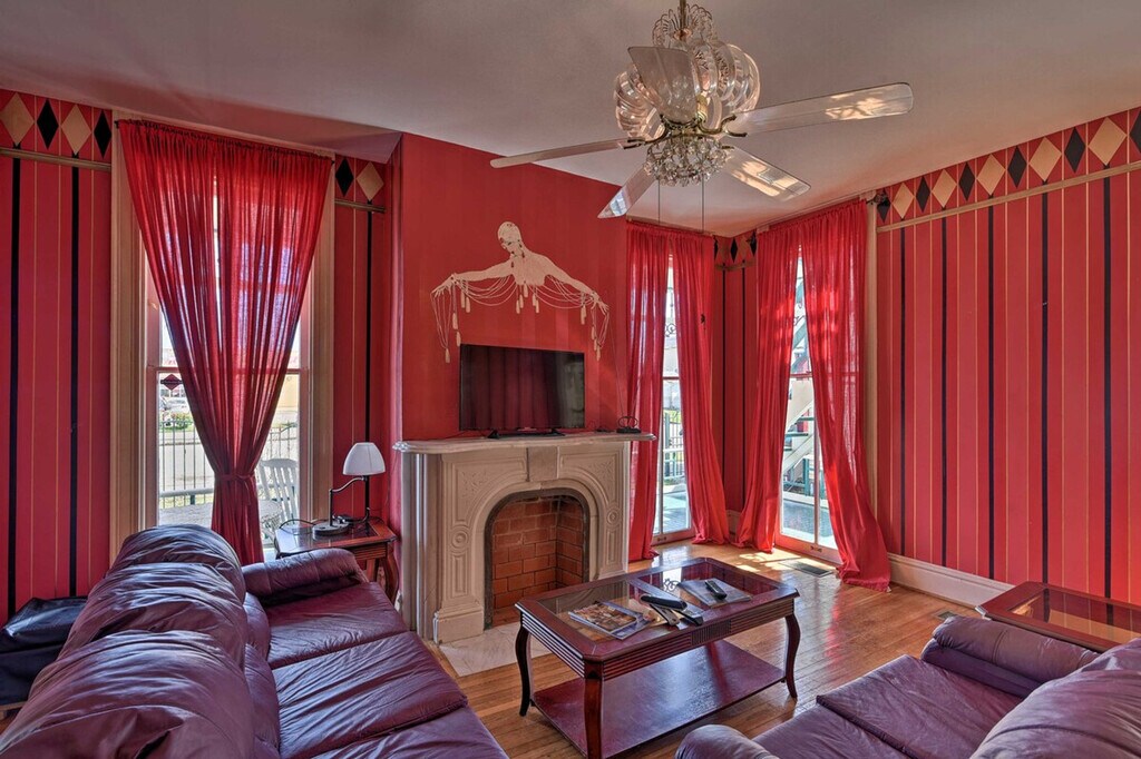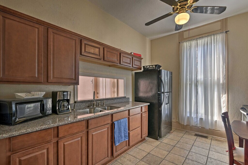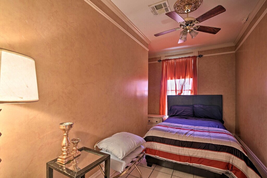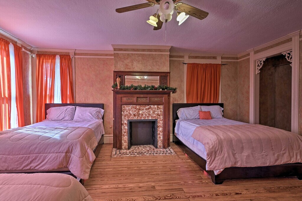 Feel at home in this Galveston vacation rental, aptly named 'Gingerbread House,' boasting old-fashioned Victorian charm, a wraparound deck, and hardwood floors. This spacious 3-bedroom, 1-bathroom home is centrally located on a corner lot. This fully outfitted home features flat-screen cable TVs, two living areas, a pool table, and a large dining room with five tables. The well-equipped kitchen includes two stoves/ovens, two drip coffee makers, a blender, and a beverage dispenser. Enjoy the convenience of free Wi-Fi, linens and towels, air conditioning, central heating, an enclosed yard, two porches, and charcoal and gas grills. Parking is available in the garage for two vehicles and in the driveway for four vehicles. Pets are welcome with a fee of $25. Located on Broadway, this home provides easy access to the rest of the island. Attractions including historic homes, Port of Galveston Cruise Terminal, Schlitterbahn, and Moody Gardens are never far away. The Galveston Island Historic Pleasure Pier and waterfront are just 1 mile away. No events, parties, or large gatherings are allowed. [SI]