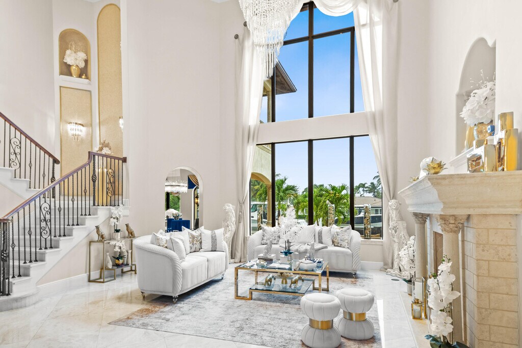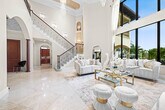 Stunning luxury waterfront estate,showcasing Mediterranean elegance with timeless architecture,modern lighting,and refined details throughout. This magnificent residence welcomes you with a grand foyer,soaring ceilings,abundant natural light,and graceful arched entryways. Featuring marble floors,a formal dining room with an arched stone ceiling,four balconies,and two gas fireplaces,this home is designed for luxury living and entertaining. Five bedrooms,each with its own private bath,plus two additional half baths. The chef's kitchen is equipped with a 6 burner gas Thermador range,Sub Zero refrigerator/freezer,two stainless steel dishwashers,double ovens,wine cooler,and walk-in pantry. The kitchen opens to the family room and includes a dining area and breakfast bar. Lease includes weekly landscaping and pool services,plus housecleaning three times per weekdelivering effortless luxury living and meticulous upkeep. Enjoy a true resort-style lifestyle. Boat remains on existing lift; private dock is yours to accommodate your own vessel up to 34 feetstep out,jump aboard,and cruise the Intracoastal or venture offshore at your leisure. This is your ultimate resort-style waterfront lifestyle waiting for you. MLS ID B26004138