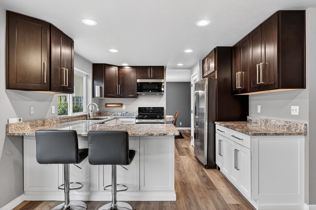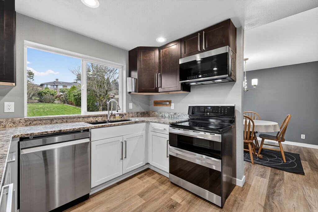 Beautifully maintained 3-bedroom, 2.5-bath home with 1,860 sq ft of comfortable living space, located in the Auburn School District. This property featuring a fully remodeled kitchen with cherry cabinets, granite countertops, upgraded appliances, and modern lighting. The home offers a formal dining room, a cozy family room off the kitchen, and a bonus room on the main level ideal for a home office or flex space. The primary suite includes a private bath and walk-in closet. Interior finishes include bamboo/cork flooring, ceramic tile, vinyl, and wall-to-wall carpet, along with ceiling fans and double-pane/storm windows. A gas fireplace adds warmth and character to the living area. Enjoy outdoor living in the large, level backyard featuring fruit trees, garden space, a full fence, deck, patio, decorative water feature, and RV parking. The property also includes outbuildings/shop space, perfect for storage or hobbies. Additional highlights include a 2-car attached garage with rear pass-through door to the patio, public water, and septic system. Utilities include electric and natural gas, with heating provided by a free-standing stove and wall units. Conveniently located on a paved street with sidewalks and curbs, this home offers a great balance of space, functionality, and outdoor living. A must-see property with room to live, work, and entertain. Virtual tour: Beautifully maintained 3-bedroom, 2.5-bath home with 1,860 sq ft of comfortable living space, located in the Auburn School District. This property featuring a fully remodeled kitchen with cherry cabinets, granite countertops, upgraded appliances, and modern lighting. The home offers a formal dining room, a cozy family room off the kitchen, and a bonus room on the main level ideal for a home office or flex space. The primary suite includes a private bath and walk-in closet. Interior finishes include bamboo/cork flooring, ceramic tile, vinyl, and wall-to-wall carpet, along with ceiling fans and double-pane/storm windows. A gas fireplace adds warmth and character to the living area. Enjoy outdoor living in the large, level backyard featuring fruit trees, garden space, a full fence, deck, patio, decorative water feature, and RV parking. The property also includes outbuildings/shop space, perfect for storage or hobbies. Additional highlights include a 2-car attached garage with rear pass-through door to the patio, public water, and septic system. Utilities include electric and natural gas, with heating provided by a free-standing stove and wall units. Conveniently located on a paved street with sidewalks and curbs, this home offers a great balance of space, functionality, and outdoor living. A must-see property with room to live, work, and entertain. Virtual tour: