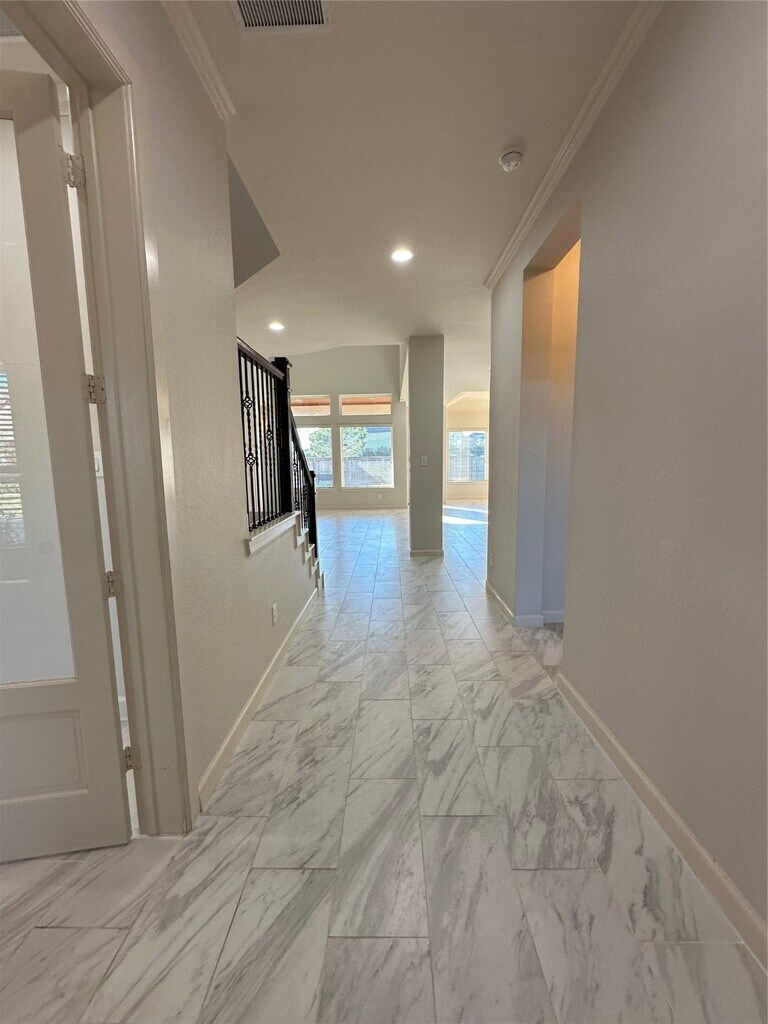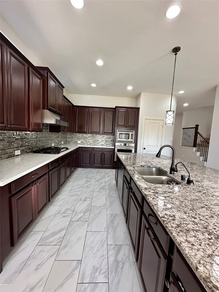 This stunning home offers everything you need— spacious and thoughtfully designed with 5 bedrooms,3.5 bathrooms,a private study,game room,media room,and a 3-car garage. Step inside to elegant tile flooring that flows from the entryway through the formal dining and family rooms,all freshly painted. The family room features soaring ceilings and a cozy fireplace,perfect for relaxing evenings. The gourmet island kitchen is a chef's dream,showcasing rich maple cabinetry,stainless steel appliances,a stylish subway tile backsplash,and a large central island ideal for entertaining. The luxurious primary suite is located on the first floor and features a granite vanity,soaking tub,separate shower,dual sinks,and a walk-in closet. Upstairs,enjoy both a spacious game room and a dedicated media room for movie nights. Situated on a corner lot,the home also includes an extended covered patio-perfect for outdoor gatherings. Zoned to top-rated Katy ISD schools! MLS# 79108506
