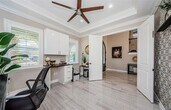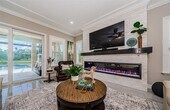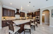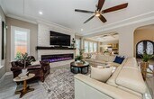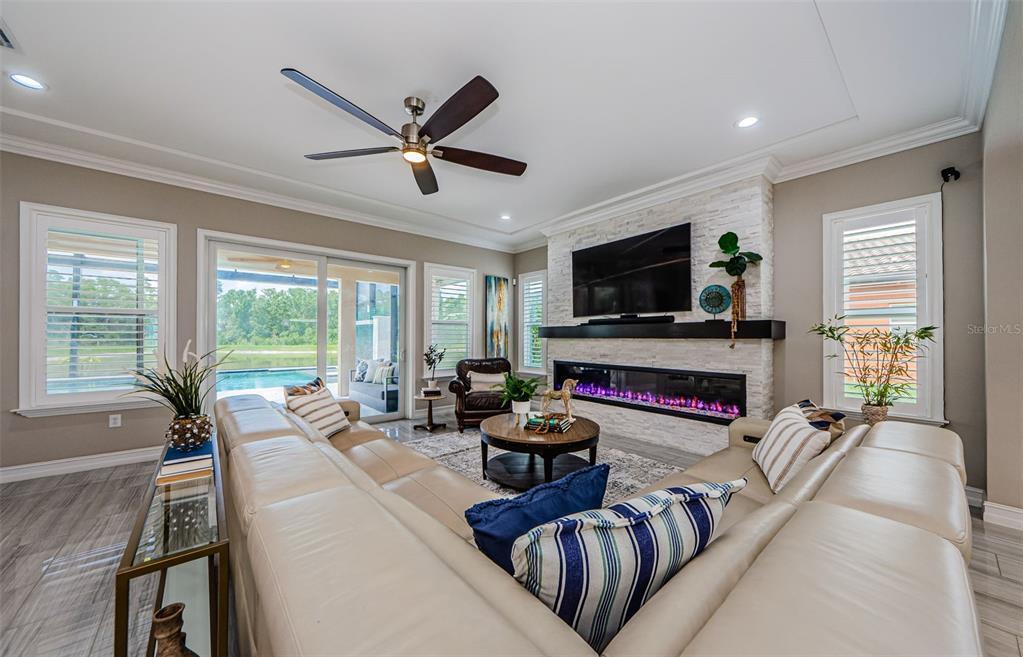 This is a luxurious Tuscany style 4 bedroom,4 bathroom estate located in the highly sought-after gated community of Estancia. As you step into the cast-iron custom double doors you immediately sense the grandeur that awaits inside. The dramatic foyer features wood ceiling beams,chandelier,porcelain tile throughout the mail level and a stunning staircase with dark wood stairs and a wrought iron banister with a Juliet balcony. The formal dining room showcases coffered ceilings perfect for entertaining guests,and hosting special gatherings. The heart of the home is the spacious living room with a stone electric fireplace and views of the pool area,pond and conservation creating a serene ambiance for relaxing evenings. The chefs kitchen offers commercial JennAir Gas Range and Refrigerator,Quartz countertops,farmhouse sink and oversized island with stylish pendant lighting. The home also includes a whole house water softener system by Rain Soft. On the main floor,a guest bedroom and full bath offers convenience and privacy—perfect for in-laws or visitors—with easy access to the pool area. Upstairs,the primary suite impresses with wood flooring,tranquil views of the conservation and pond,and private access to the upstairs balcony. The spa-like en suite includes: Dual vanities,Garden tub and large walk-in shower,Custom-designed walk-in closet. Also upstairs: a media room with balcony access,two additional bedrooms,two full bathrooms,and a utility room with sink and built-in storage. The outdoor living area is simply spectacular. A true extension of the home,it features: a Full outdoor kitchen with Alfresco gas grill,Kamado Joe smoker,power burner,side burner,sink,and beverage refrigerator,Custom bench seating in light wood. This home offers one of the tallest panoramic screened cages (polystyrene material,hurricane-resistant) with a 45x22 saltwater pool with bubblers,pool lighting,waterfall,and chlorine generator and a Built-in fire pit for cozy evenings outdoors. There are too many upgrades to list—from the high-end finishes to thoughtful design choices,to a whole house water softener system,tankless water heater to outdoor security system this home is truly one-of-a-kind. Don't miss your chance to experience this exceptional lifestyle in Estancia. Contact me today to schedule your private showing. MLS# TB8443537