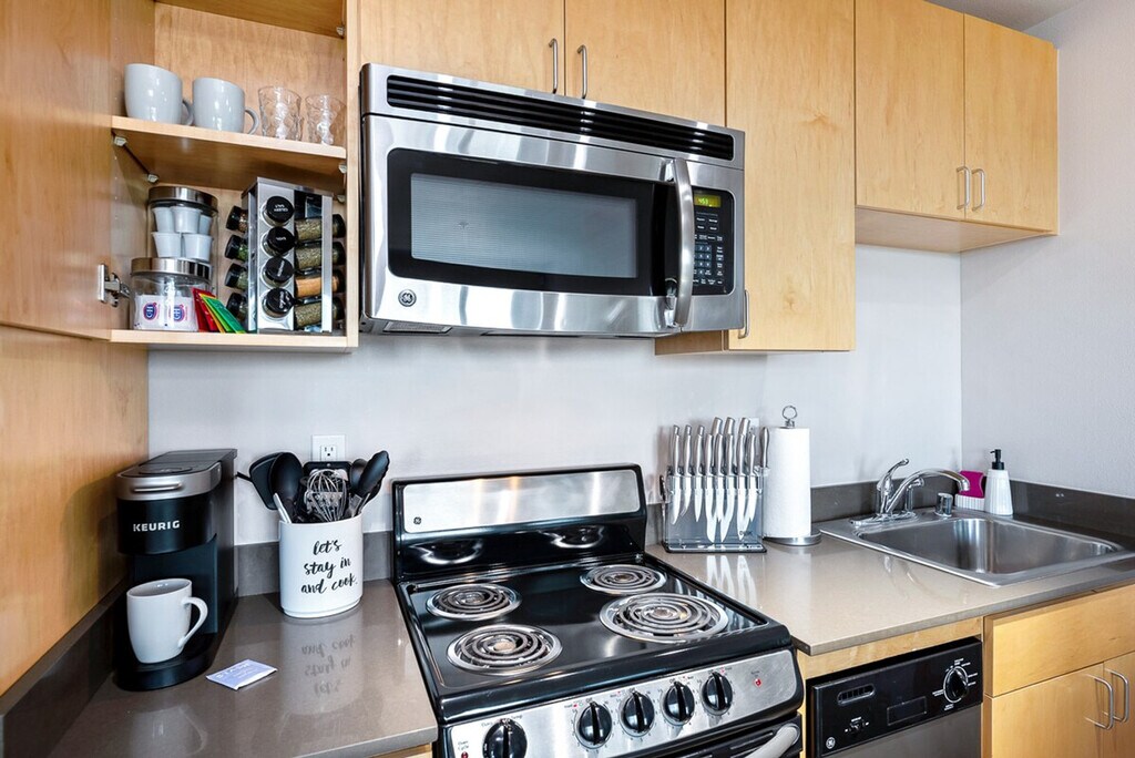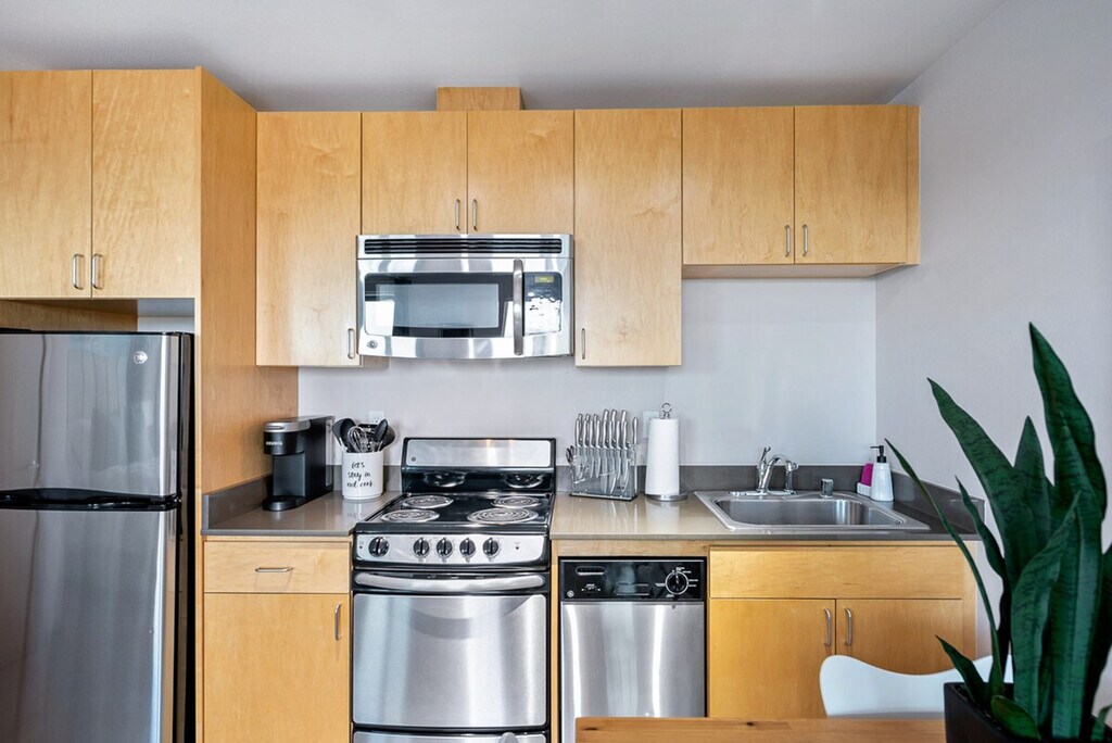Feel at home in this peaceful, fully equipped studio designed for relocating professionals and urban explorers in central Beacon Hill. Enjoy fast Wi-Fi, streaming TV, and in-unit laundry, along with a private balcony offering stunning views of the Cascades, Rainier, and Lake Washington. Conveniently located within walking distance to light rail, grocery stores, cafes, and restaurants, with easy access to I-5 and I-90 for seamless commutes. This thoughtfully designed studio offers everything needed for a productive and comfortable stay in Seattle. With ultra-fast 940 Mbps internet and a dedicated workspace, it is perfect for work-life balance. The fully equipped kitchen is ready for daily cooking, and the in-unit washer/dryer comes with starter pods for your convenience. Enjoy seamless living with keyless entry and a 55" 4K Roku TV with YouTube TV. Free street parking is typically available within a block or two if you have your own car. If you don't have a car but would like to use one for the day or hour, Gig Car Share is available in the area. Pets are welcome, and you can message us for information on pet fees and breed restrictions set by the property. Located just 2.5 miles from Downtown Seattle and major corporate offices, this studio is ideal for corporate travelers. Steps away from the light rail for car-free commuting throughout the city, and within walking distance to local cafes, restaurants, and grocery stores. Easy access to I-5 and I-90 makes regional travel a breeze. With a walk score of 85, this area is very walkable, offering amazing bars, restaurants, coffee shops, and parks within minutes. This is a residential community, so it's important to respect the property rules and the other residents during your stay. Your stress-free relocation starts here—just bring your suitcase! Includes ultra-fast 940 Mbps internet and a dedicated workspace, making it ideal for remote work. A laptop computer is not included.