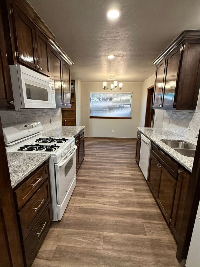Welcome to this fully remodeled gem located in the heart of Moore, OK. This stunning property boasts three bedrooms and two full bathrooms, offering ample space for comfort and convenience. The fully equipped dream kitchen features new custom cabinets, modern granite counters, and brand new sinks, faucets and custom lighting throughout. The home's transformation is a must-see, with every detail meticulously updated to exude modern elegance. Step outside to a huge private fenced backyard, perfect for outdoor activities or simply enjoying the fresh air. For added peace of mind, the property also includes an extra-large inground storm shelter. This house is more than just a home; it's a lifestyle. Don't miss out on this incredible opportunity - see and apply today!