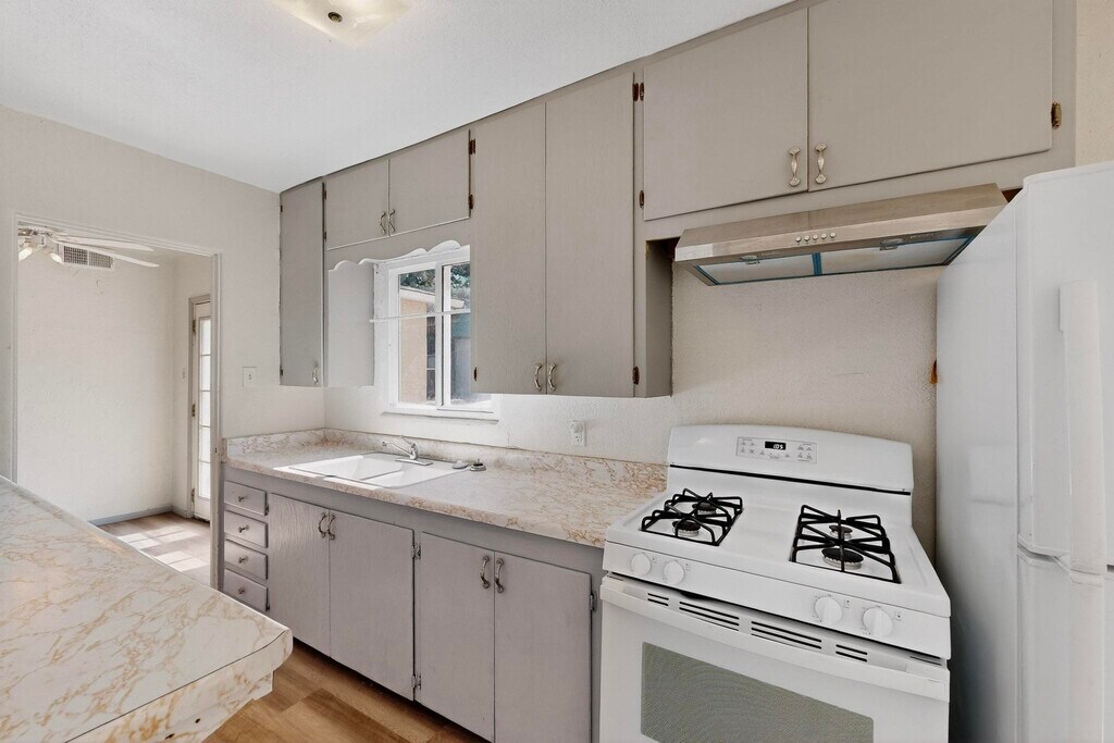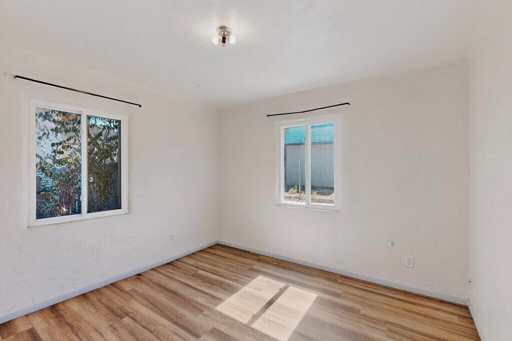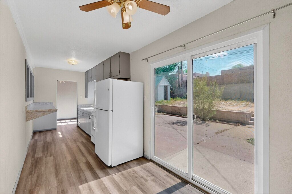 Lovely 2 bed + Office (could be used as third bedroom) near Hyder Park and 1 mile to UNM! Single family home with private backyard and open patio. Updated vinyl floors throughout,double pane windows and sunny kitchen w/ gas stove and refrigerator. Separate utility room w/ washer/ dryer. Owner pays water/sewer,Tenant pays gas/electric. Pets negotiable,no smoking.