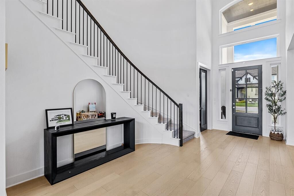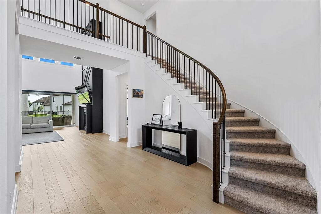 A completely flat, NE Facing Travisso homesite, on a cul de sac street, a true rarity! The highly sought after Arabella Floorplan by Taylor Morrison is an expansive five-bedroom, five-bathroom home offers 4,403 square feet . The main floor features a grand entry highlighted by a rounded staircase, high ceilings, and abundant natural light. A spacious living area centers around a modern fireplace with sleek custom mantle, and the designated painted study provides an idea modern work at home environment. The primary bedroom, also on the main floor, includes an extended sitting area, a luxurious drop-in tub, and an impressive custom closet. A guest ensuite on the main level ensures privacy and comfort for visitors. Upstairs, you’ll find a large media room, game room, and thoughtfully designed secondary bedrooms, each with custom closets for maximum usage and design. The three-car garage includes durable epoxy flooring, perfect for both parking and workshop needs. Included is a TESLA Wall Charging Unit. Nestled on a flat homesite, the large backyard provides ample space for activities or future customization. The home location nears both the front and Osage entrance of the Travisso Community, providing an advantageous exit into central Leander. Located in the highly sought-after Leander School District. Refrigerator, washer and dryer will be provided! MLS ID 7099246