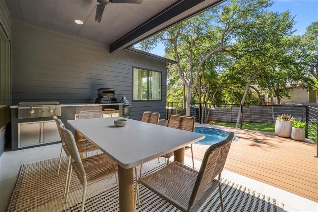 Welcome to your private retreat in the heart of Austin’s 78741. Set on a rare ¼-acre lot just minutes from Lady Bird Lake, SoCo, East Austin, and the airport, this newer construction home offers the perfect blend of luxury and location. A tree-lined driveway sets the tone, opening into a dramatic two-story foyer and light-filled living area with wide-plank hardwoods, soaring ceilings, and a sleek fireplace framed by walls of windows. Entertain with ease in the chef’s kitchen featuring Thermador appliances, a spacious walk-in pantry, and seamless flow into the dining area and covered patio. The outdoor kitchen—with Coyote flat-top grill and pizza oven—makes alfresco dining a year-round lifestyle. The backyard is a true oasis, complete with a cowboy pool that cools to 55° in summer or heats to 110° in winter, plus plenty of space for future expansion. Upstairs, double doors lead to a flexible game room with bonus storage, while the dedicated office and full bath make work-from-home both quiet and efficient thanks to energy-saving foam insulation. The spa-style primary suite boasts a soaking tub, frameless shower, dual vanities, and an oversized walk-in closet. Location highlights: 7 minutes to the airport, 7 minutes to Lady Bird Lake hike & bike trails, and 10 minutes to SoCo. Favorite local spots include Radio East, Meanwhile Brewery, Pinthouse, Buzzmill, Mercado Sin Nombre, Ezov, and more. Wide, quiet streets with no through traffic create a welcoming neighborhood feel, perfect for biking and evening strolls. This thoughtfully designed home offers unmatched privacy, modern amenities, and an enviable Austin lifestyle—all in one.