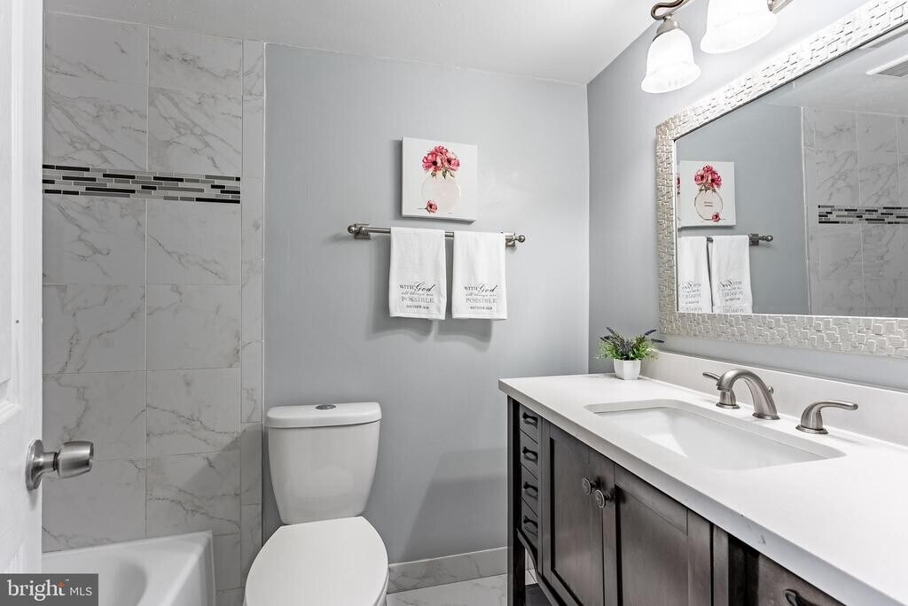 Beautifully Updated Condo in the Heart of Falls Church CONDO FEE COVERS EVERYTHING, INCLUDING ELECTRIC Comes with two parking spaces AND one guest parking pass Welcome to this move-in ready 2-bedroom, 1-bath home located in the highly sought-after Yorktowne Square Condominiums—just minutes from the vibrant Mosaic District. This stylish second-floor unit has been thoughtfully updated with fresh paint, brand-new carpet, crown molding and a new AC unit, offering the perfect blend of comfort, convenience, and modern design. The open-concept layout creates an inviting space for both everyday living and entertaining. The updated kitchen features sleek countertops, bold black cabinetry, stainless steel appliances, a tile backsplash, and a breakfast bar that opens seamlessly to the living and dining areas. Natural light pours in through large windows and an expansive three-panel sliding glass door, leading to your private balcony—a perfect spot to enjoy morning coffee or unwind at the end of the day. The renovated full bath showcases elegant floor-to-ceiling tile, modern fixtures, and a spacious vanity. Both bedrooms are bright and generously sized, offering ample closet space and a peaceful atmosphere. Enjoy the best of community living with amenities including a pool, tot lots, and abundant parking, all set within a beautifully landscaped, tree-lined neighborhood. With easy access to Metro, major commuter routes, shopping, dining, and entertainment, this condo delivers exceptional value in one of Northern Virginia’s most convenient and desirable locations. A must-see opportunity for anyone seeking comfort, style, and accessibility in Falls Church! Deposit is only the equivalent of one month and the repair deductible is only $100