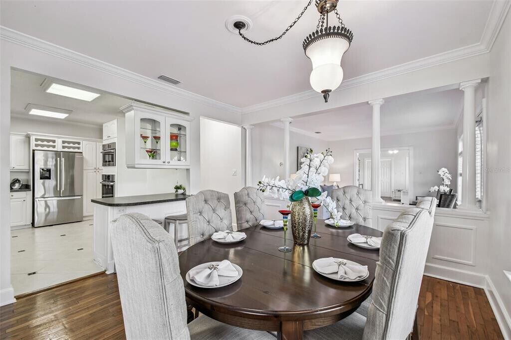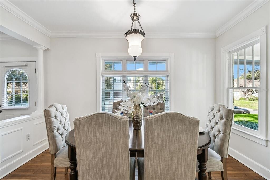 Stephen GayThis charming brick home sits on a 7,600 sq ft lot in the heart of Palma Ceia, one of South Tampa s most walkable and desirable neighborhoods. The living room welcomes you with great natural light from large front windows, flowing into the dining area accented by wainscoting and classic columns. A convenient porte cochere entry leads directly into the dining room. The updated kitchen features white cabinetry with glass-front details, a gas range, wall oven and microwave, Bosch appliances, a breakfast counter, and space for everyday meals or casual entertaining. A spacious flex room with new carpet, dual closets, and French doors to the backyard works well as a third bedroom, home office, or bonus room. Down the hallway are two additional bedrooms, two full bathrooms, and a utility room with extra storage and backyard access. The primary bedroom is located at the rear of the home and includes multiple closets and an ensuite bathroom with a garden tub and walk-in shower. Recent updates include fresh interior and exterior paint, new lighting and ceiling fans, updated kitchen hardware, new carpet in the third bedroom, and refreshed landscaping. The fully fenced backyard offers plenty of space for outdoor use, and the oversized one-car garage provides extra storage or workshop space. Located near MacDill Avenue, Hyde Park Village, Bayshore Boulevard, and Ballast Point Park, with easy access to I-275 and the Selmon Expressway. Zoned for Roosevelt Elementary, Coleman Middle, and Plant High School.