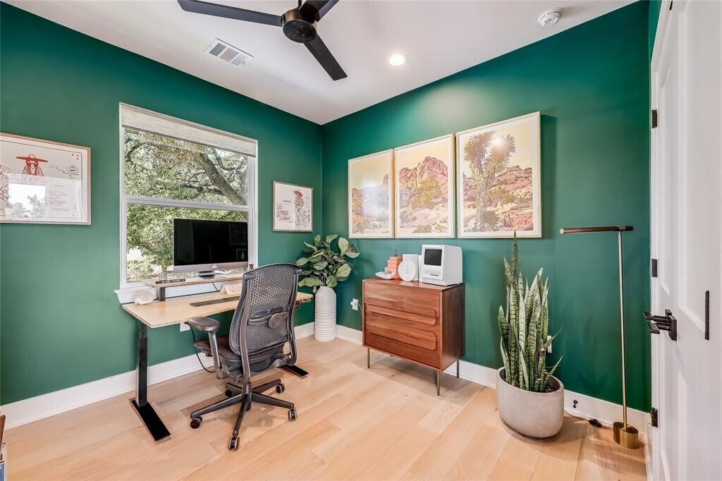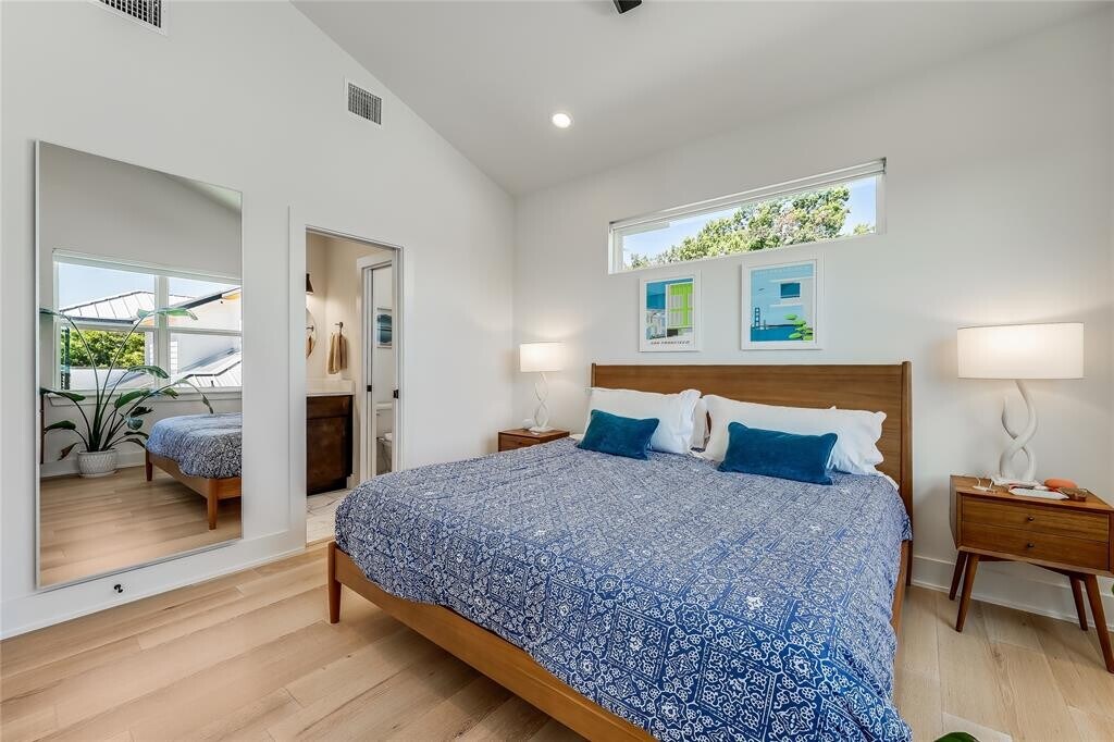 Main home with casita/separate guest house. Unfurnished. Welcome to this 2021-built modern beauty in the heart of 78704. The 2-bed, 2.5-bath main home welcomes you with a spacious open-concept first floor, perfect for entertaining, and flows seamlessly to a fenced private yard. Upstairs, both bedrooms feature en-suite baths and open to a large balcony and sun deck with sweeping Downtown views. Everyday living is easy with an upstairs washer/dryer and convenient attached garage. A detached casita offers endless possibilities with a spacious open living space, lofted bedroom area, and full bath - ideal for guests, a home office, or your next creative project. All of this is set just blocks from South Austin favorites like Summer Moon, Fresa’s, Elizabeth Street Cafe, and more. This home delivers the best of South Austin walkability, style, and functionality. 1,190 SQFT Main House / 494 SQFT Guest.