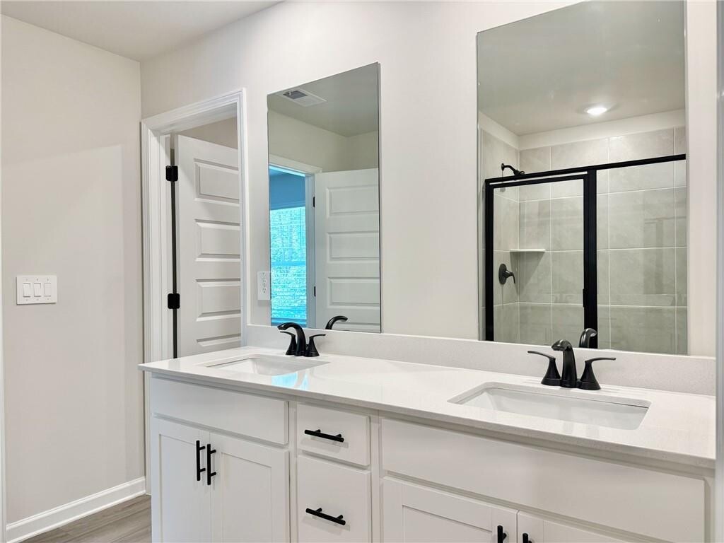 Stunning NEW CONSTRUCTION Home at Vines at Mill Creek! Welcome to your dream home in the highly sought-after Vines at Mill Creek community! This beautifully designed,energy-efficient 5 bedroom,3 bath home offers open living space with modern finishes,and a private wooded backyard. Step inside to a spacious,open-concept main floor featuring a flex room perfect for a home office,a chef-inspired kitchen with a large island,walk-in pantry,and stainless steel appliances that flow seamlessly into the family room and dining area ideal for entertaining. A guest room and full bath on the main level is perfect for visiting guests. Upstairs,retreat to the expansive primary suite complete with a luxurious en-suite bath,dual vanities,and a huge walk-in closet. Three additional spacious bedrooms,a full bath,convenient upstairs laundry room,and an open loft area provide ample space for relaxation,work,or play. Enjoy peaceful evenings on the covered patio overlooking your private wooded backyard,creating the perfect setting for outdoor dining or weekend gatherings. Community Amenities include sparkling pool and cabana,playground,and well lit sidewalks. Located just minutes from Chateau Elan,you will love being near world-class golf,resort-style dining,boutique shopping,scenic parks,and top-rated schools all while enjoying the tranquility of a nature surrounded neighborhood. Don't miss your chance to own this exceptional new home built with Meritage Homes' signature energy-efficient features,smart design,and quality craftsmanship. Schedule your tour today and make this modern haven your forever home!